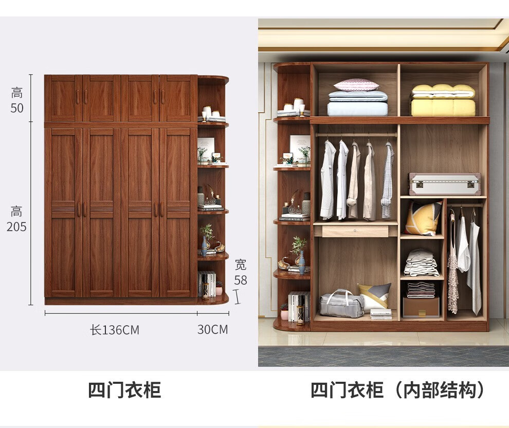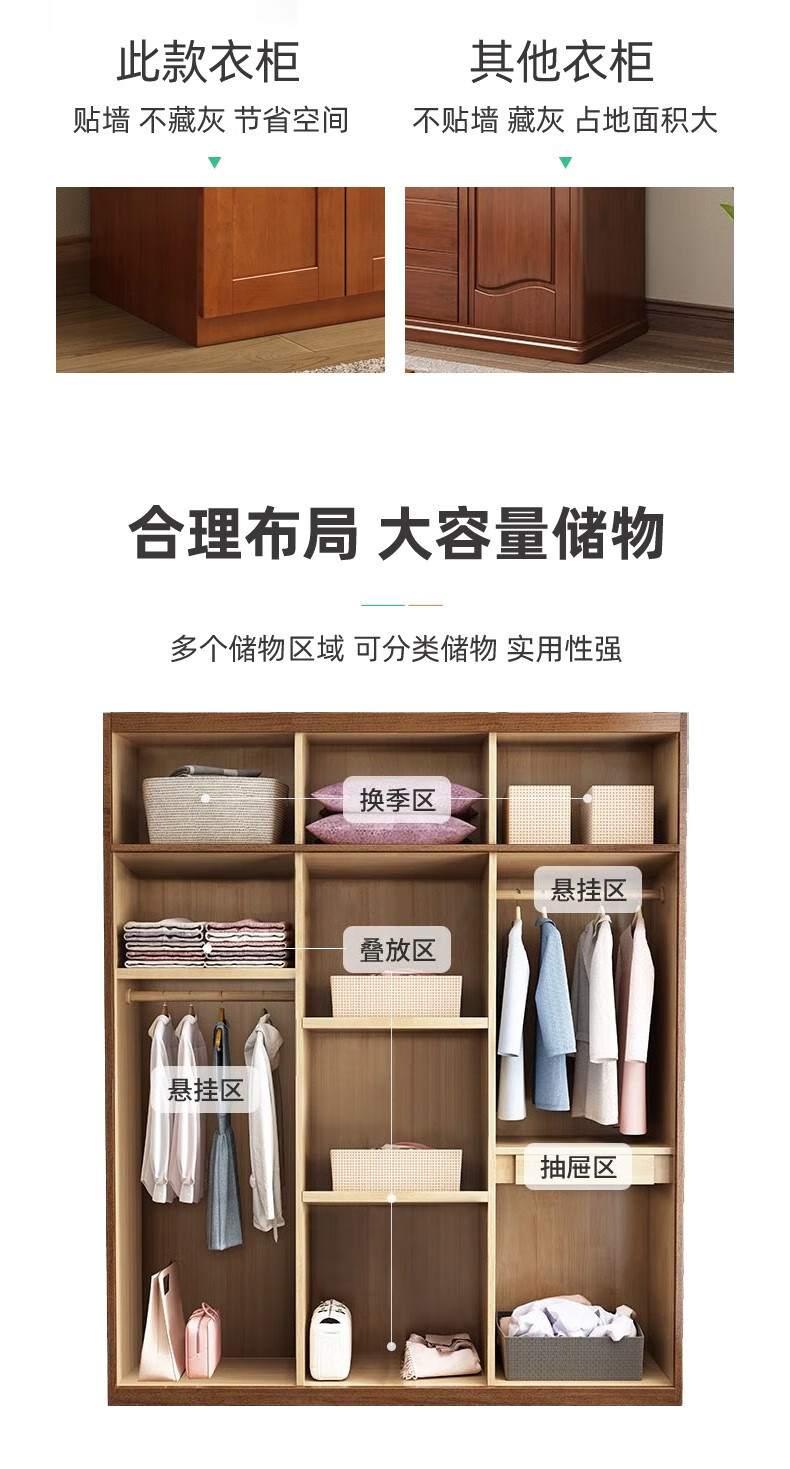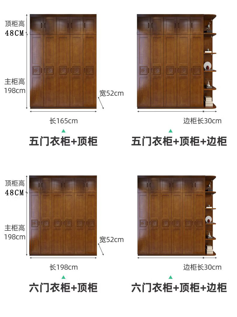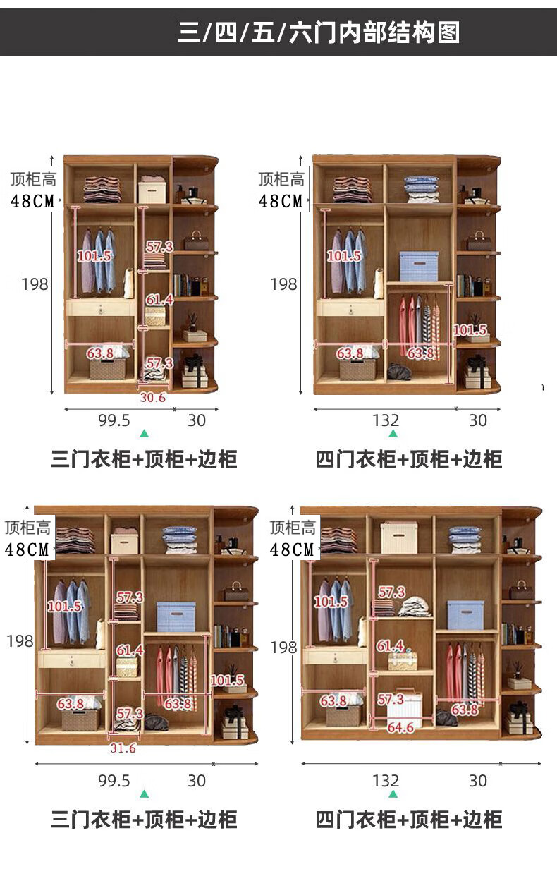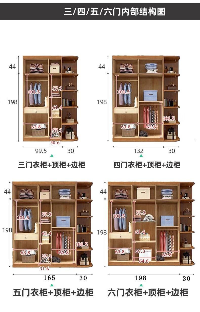 Millennium Shengshi Wardrobe Solid Wood Wardrobe Bedroom Simple Modern Chinese Style Multi-Door Combination Large Wardrobe Wooden Assembly Furniture Walnut Color Without Top Three Doors