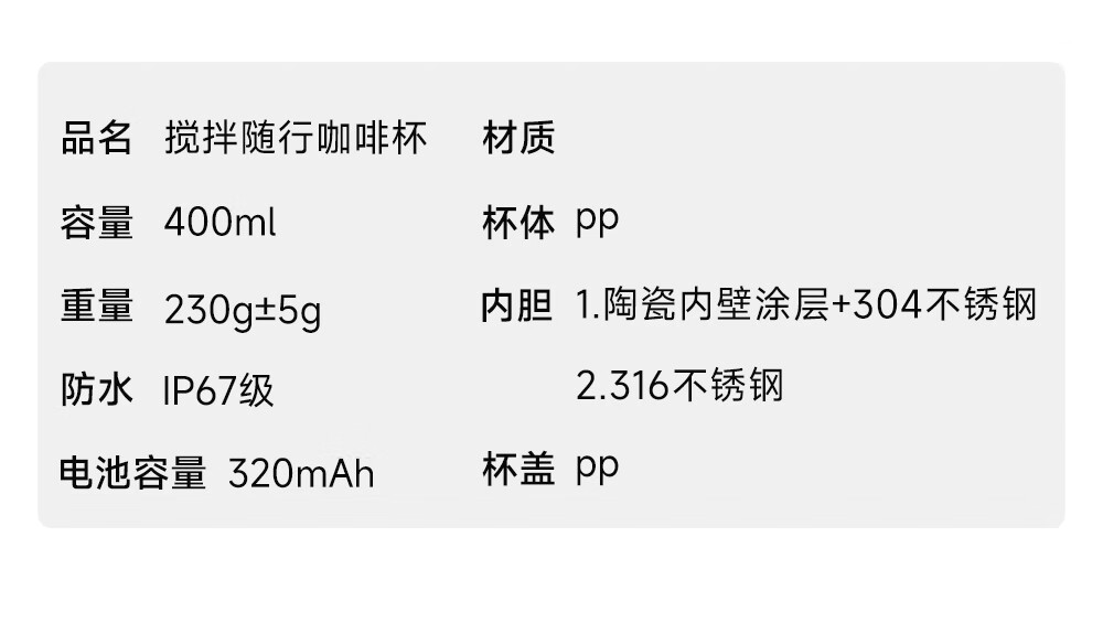 Diamond fully automatic stirring portable coffee cup rechargeable magnetic car outdoor water cup ceramic layer 400ml 5th generation