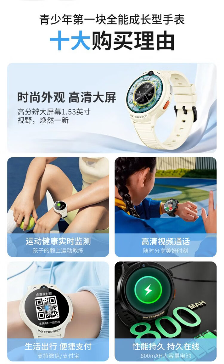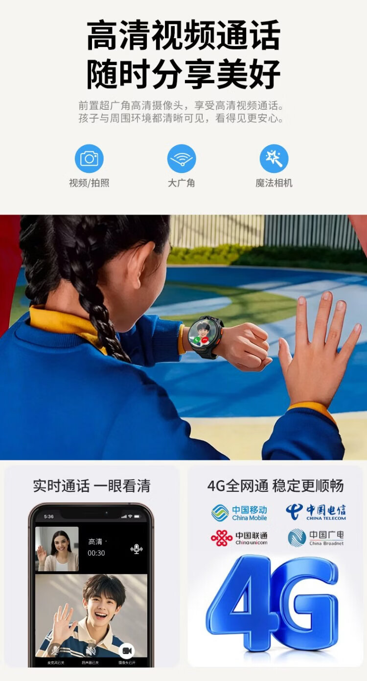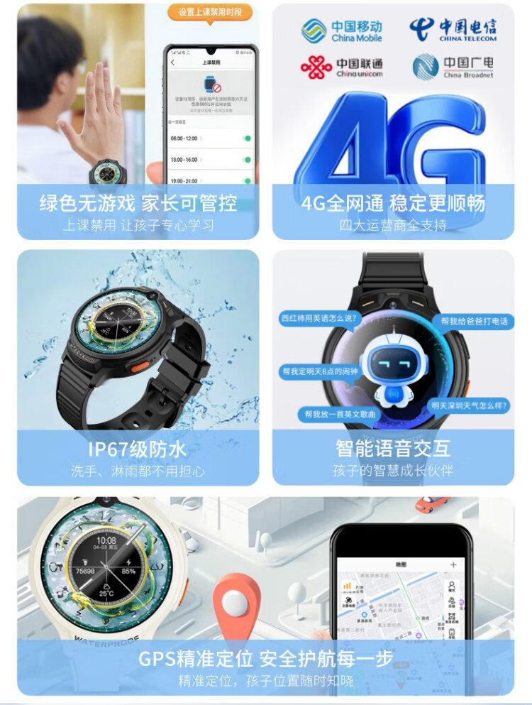 Patriot children's phone watch G08 independent call 4G full network multi-positioning class disabled waterproof payment multi-function junior high school student smart watch black