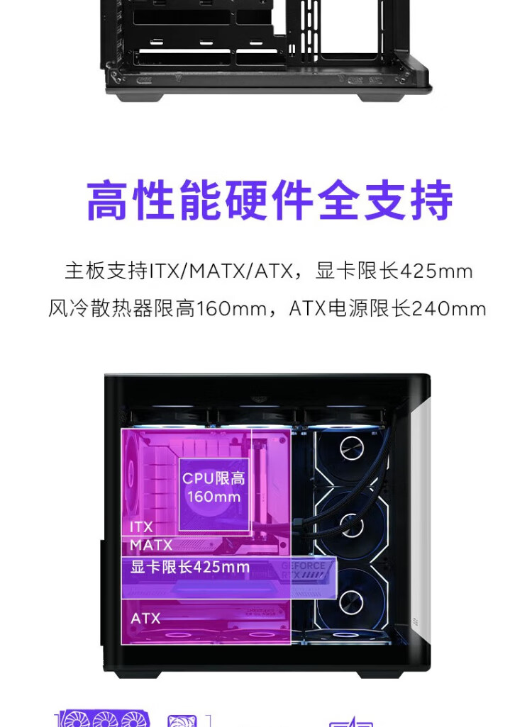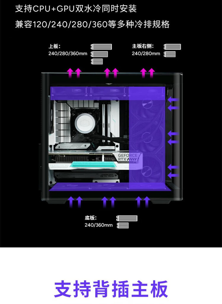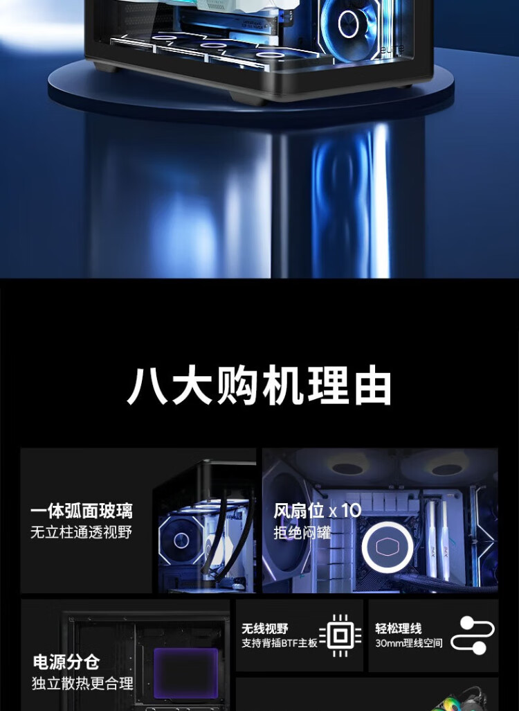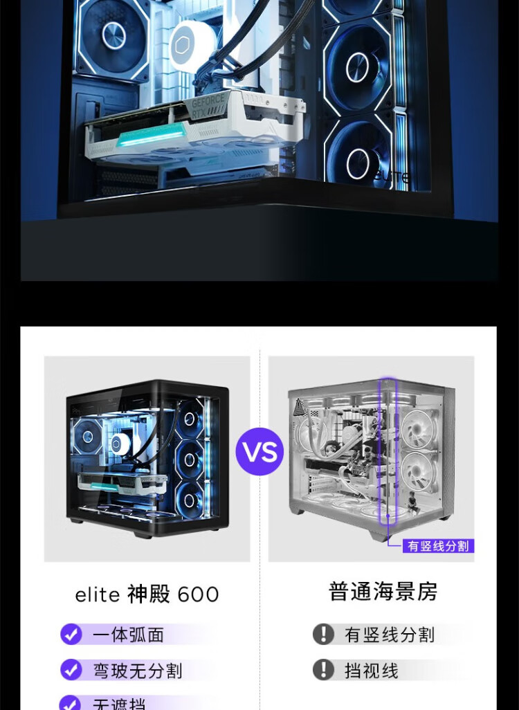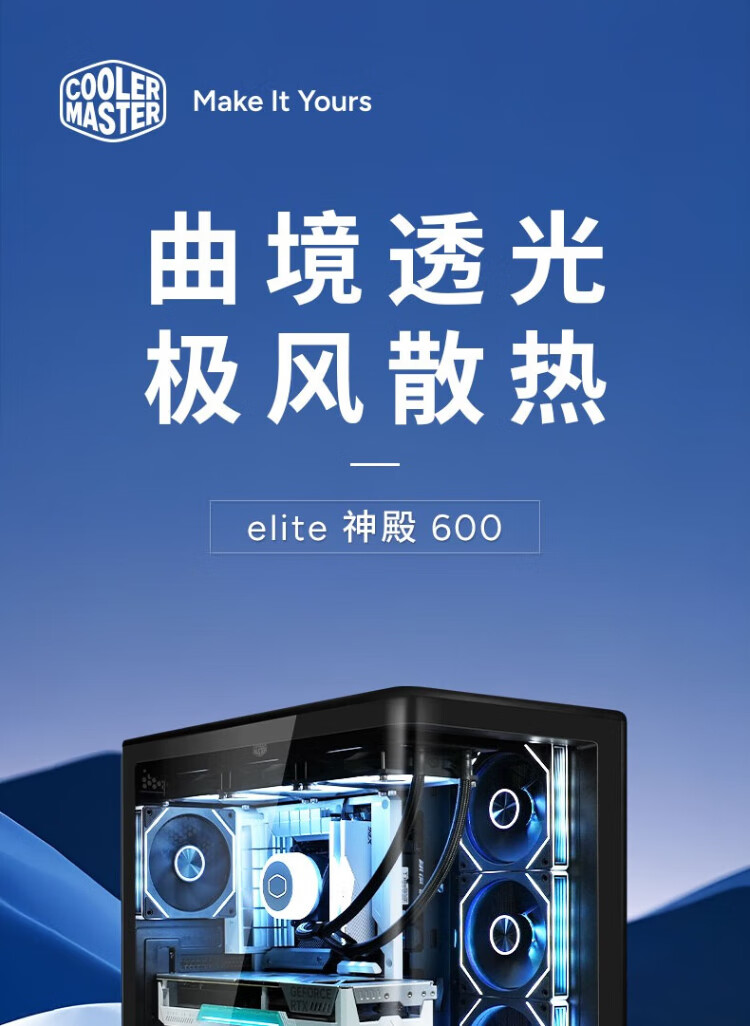 95% new CoolerMaster elite Temple 600 black ATX ocean view case integrated curved glass no columns/supports 360 water cooling/Type-c