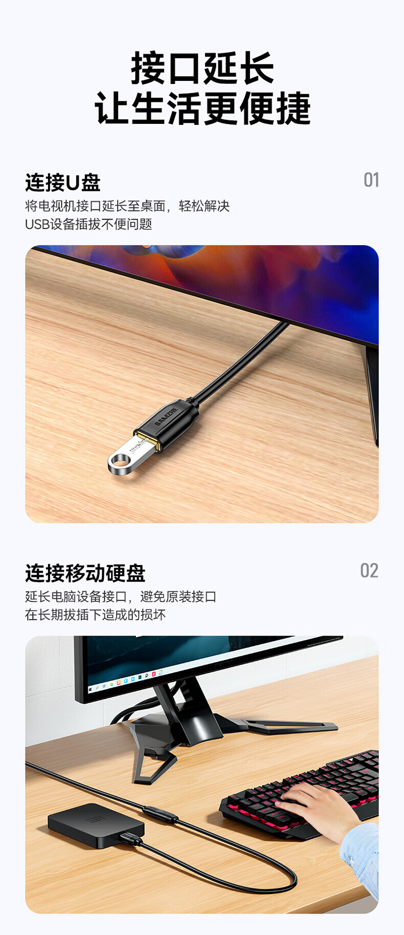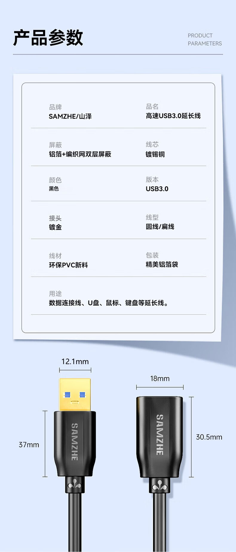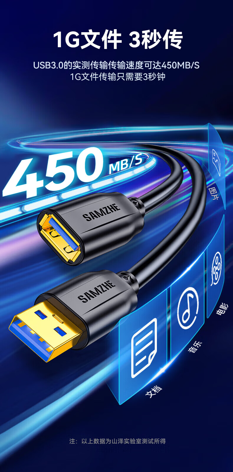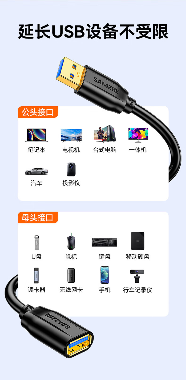 Shanze usb3.0 extension cable male to female TV USB mouse hard drive keyboard extension cable computer data connection extension cable printer splitter adapter cable 0.5 meters UK-005