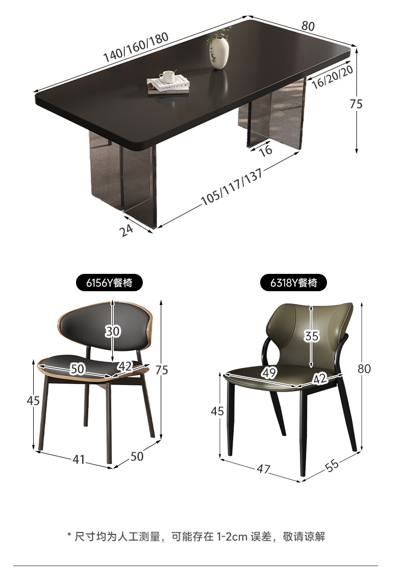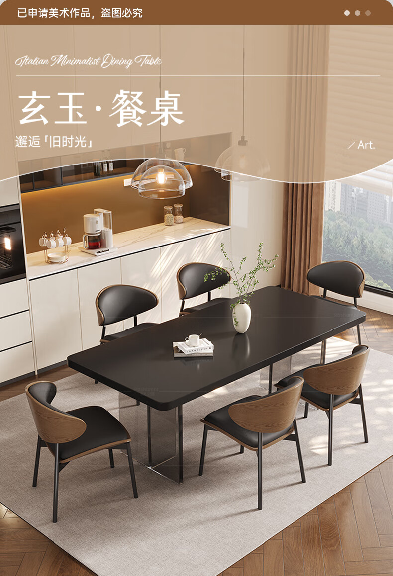 Pashaman full support slate dining table modern simple acrylic suspended rectangular table 1.4 meters + dining chairs * 4 pieces 6170Y
