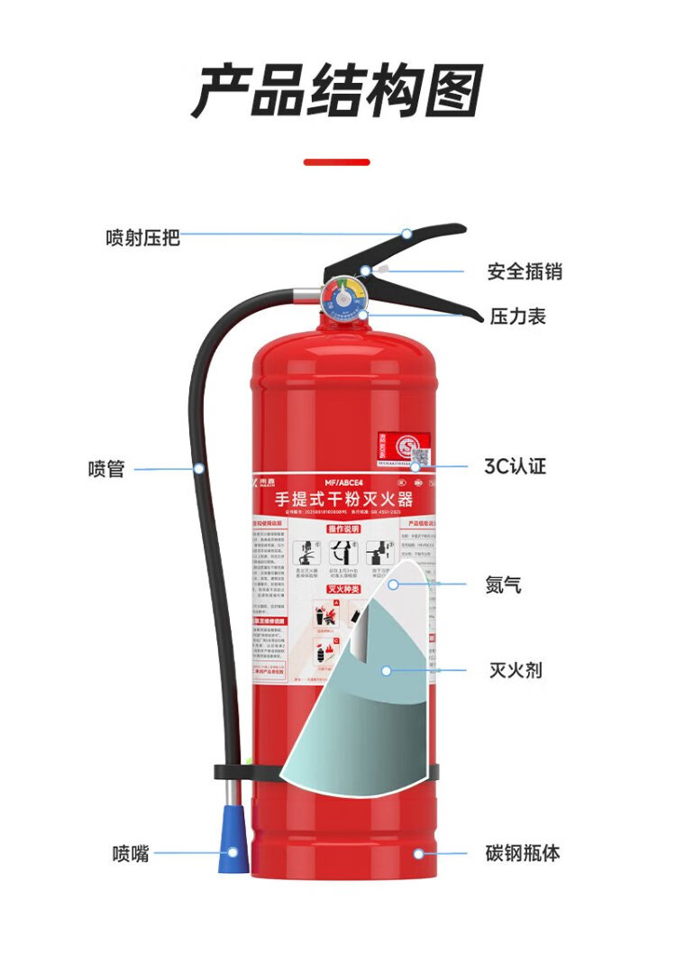 Nanxin 25-year new national standard 4kg dry powder fire extinguisher commercial 4kg fire extinguisher 3C certified fire inspection equipment vehicle-mounted household factory company property fire protection