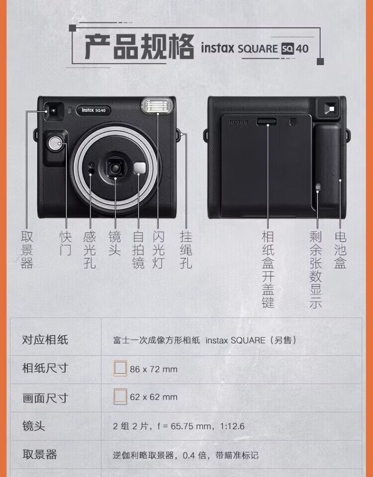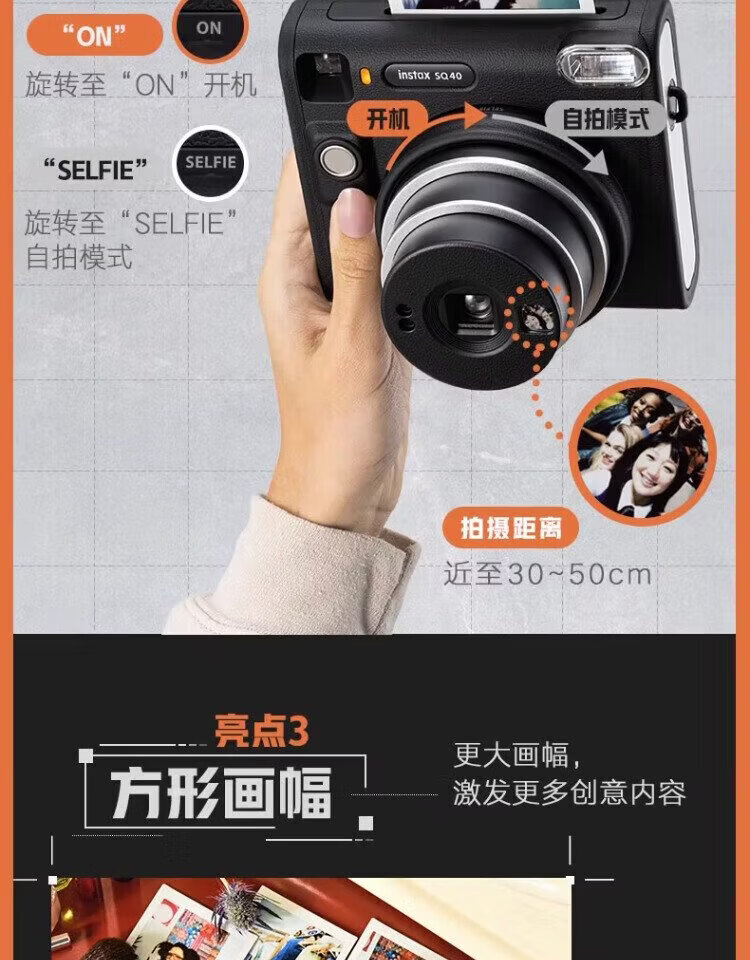 Fuji (FUJIFILM) instax SQUARE SQ1/S40 instant imaging camera square photo New Year gift annual meeting prize Valentine's Day SQ40 black international version