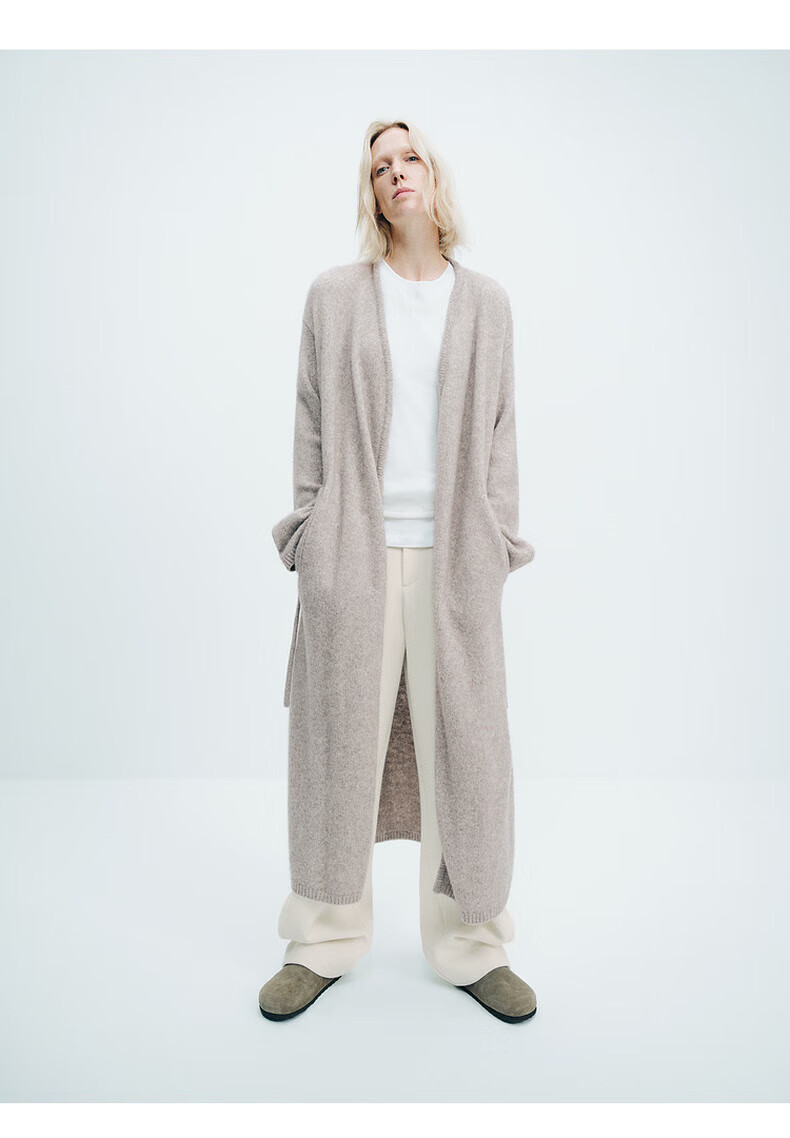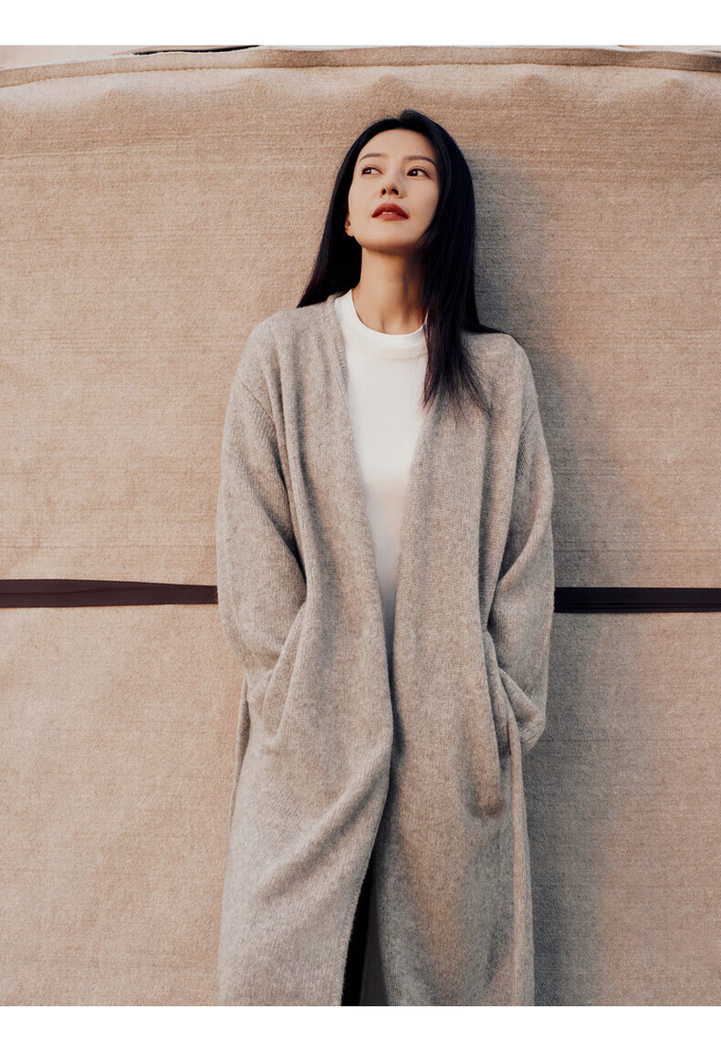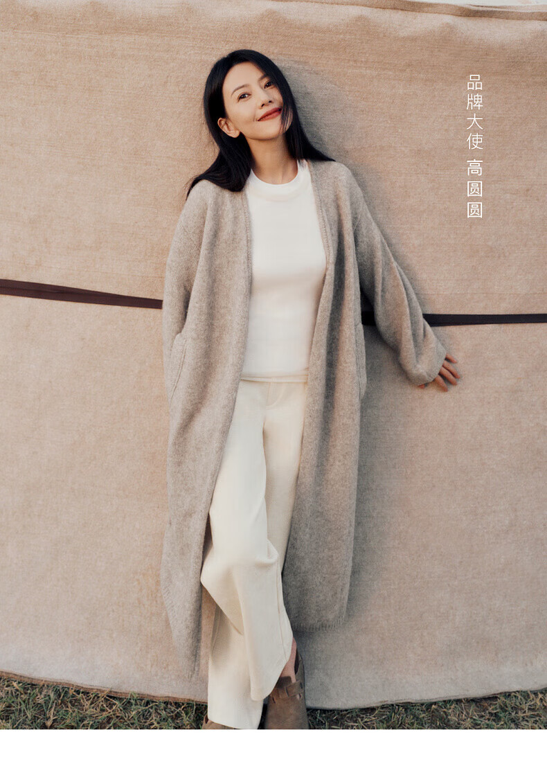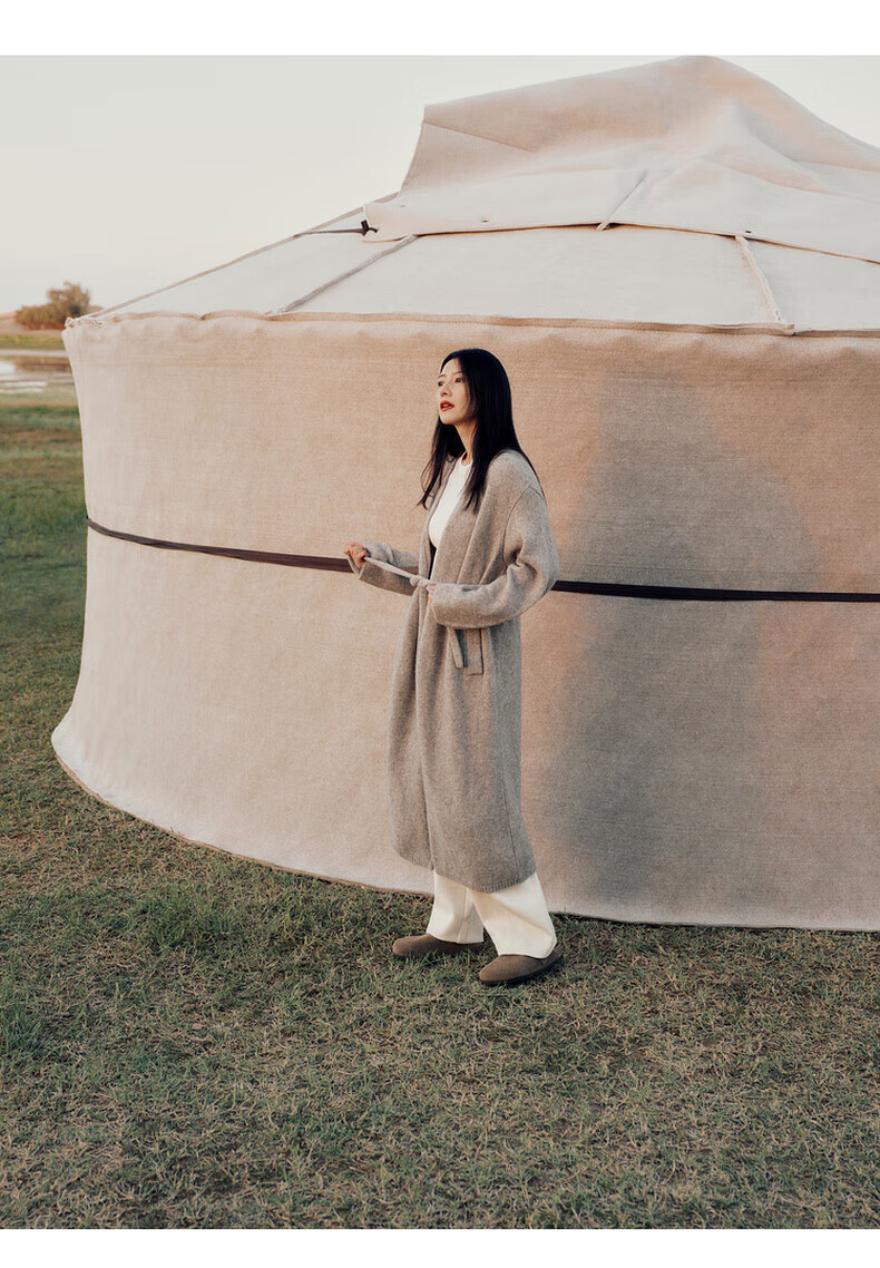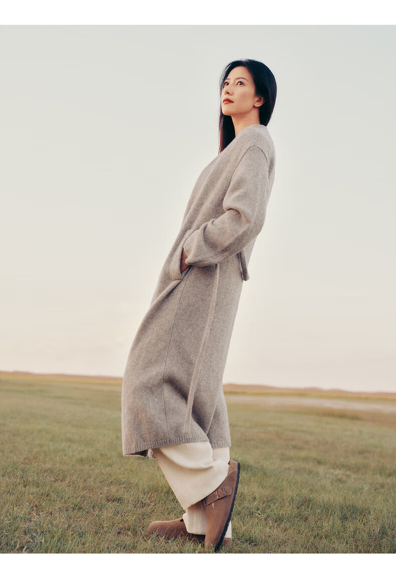 Edition Gao Yuanyuan's same style E+ light life 2024 winter new style lace-up long wool yak sweater jacket