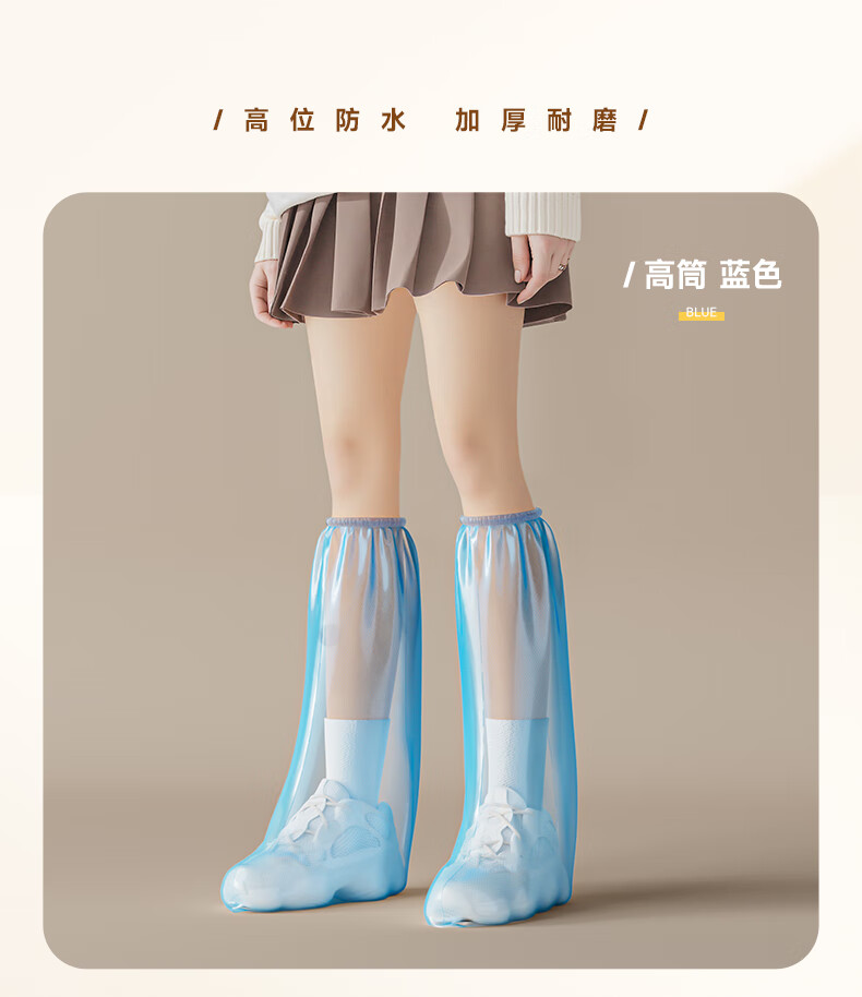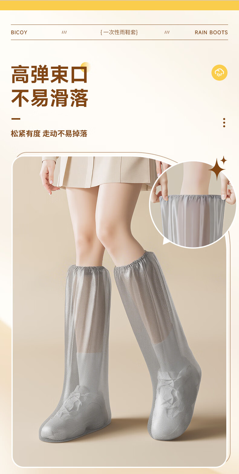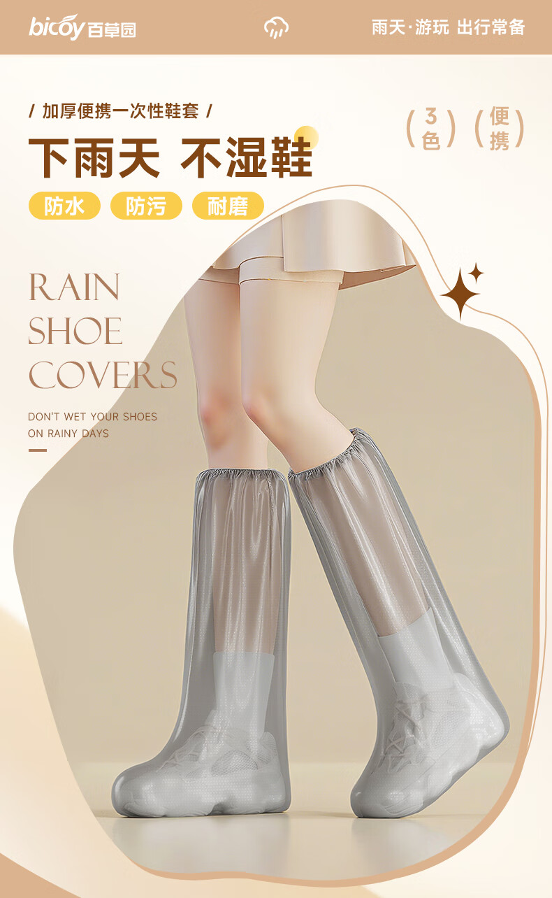 Baicaoyuan disposable rain boots shoe covers waterproof anti-slip transparent plastic thickened wear-resistant foot covers rain-proof high tube 20 pieces on rainy days