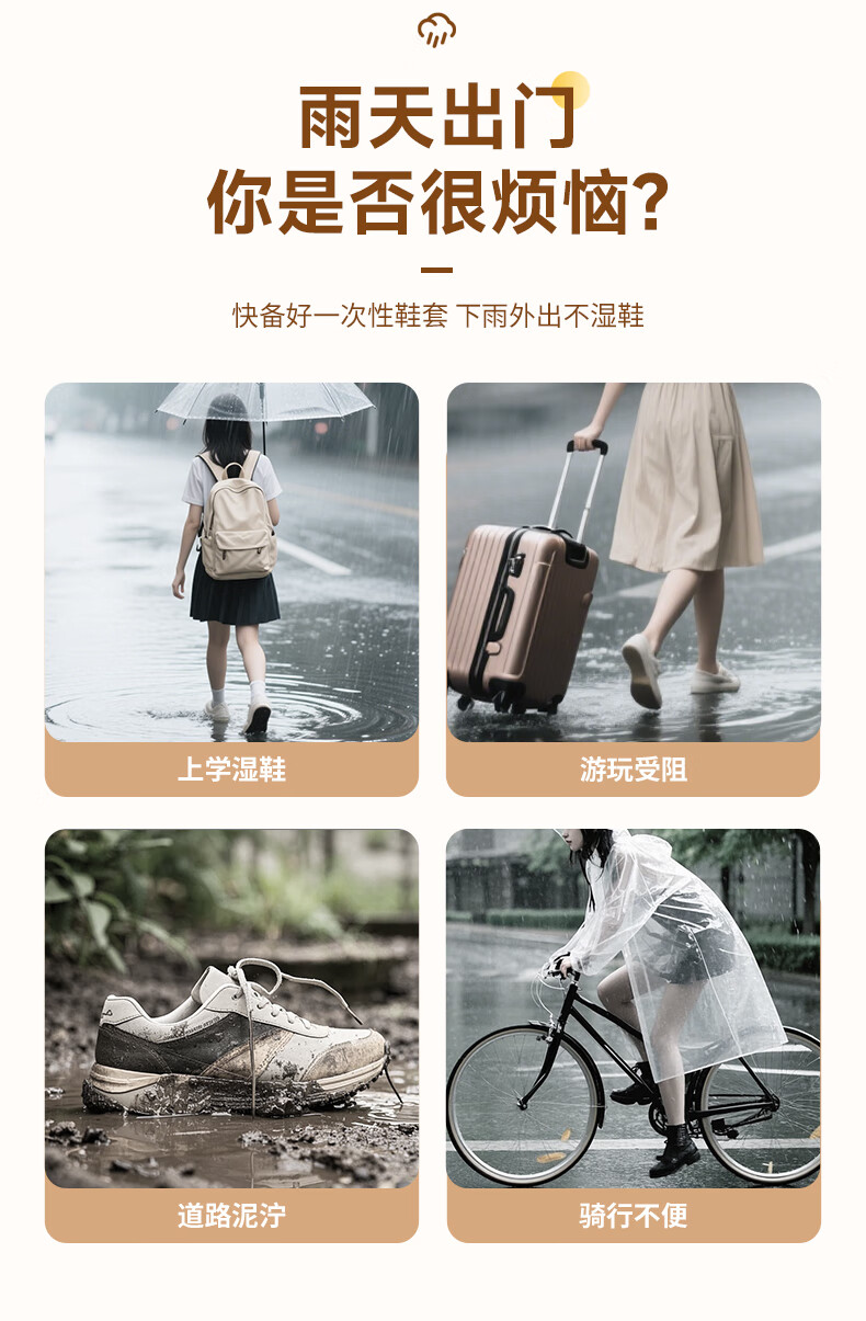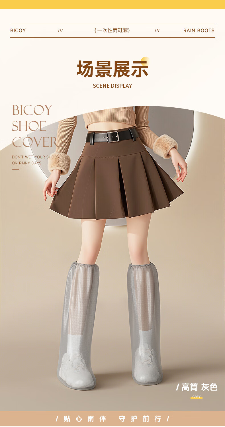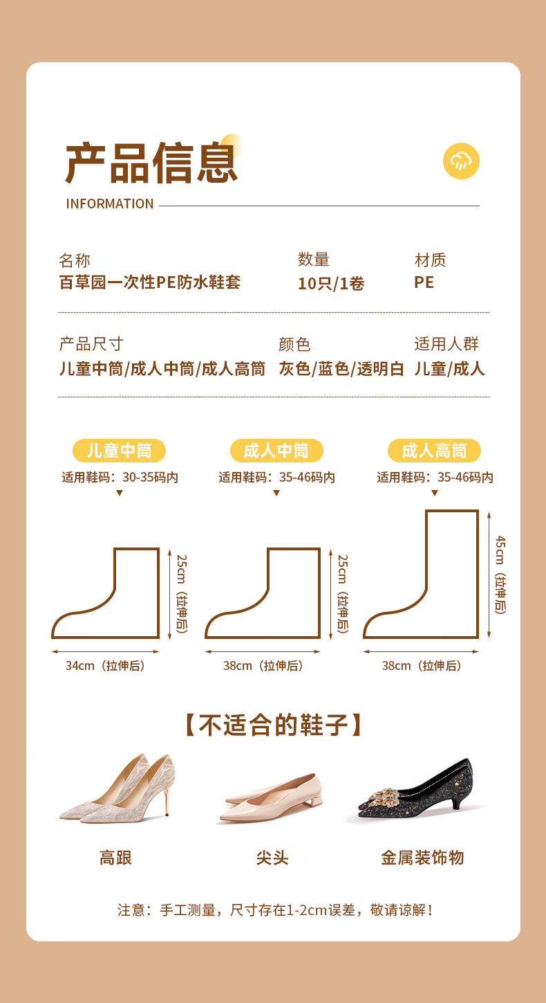 Baicaoyuan disposable rain boots shoe covers waterproof anti-slip transparent plastic thickened wear-resistant foot covers rain-proof high tube 20 pieces on rainy days