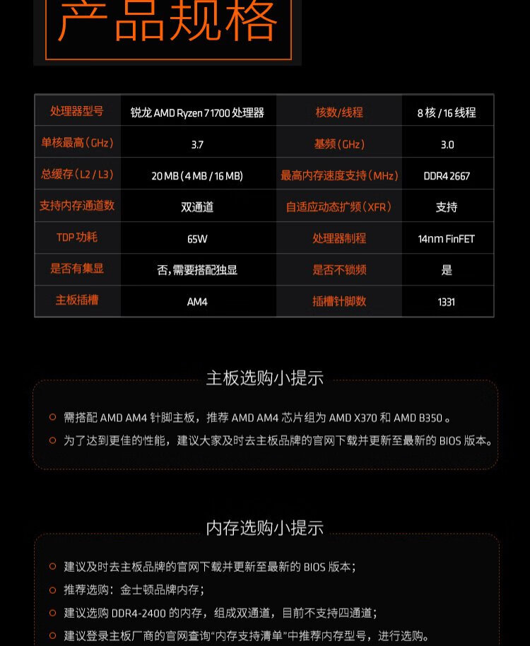 Quasi-new AMD Ryzen 7 1700 processor (r7) 8 cores 16 threads 3.0GHz AM4 interface boxed CPU