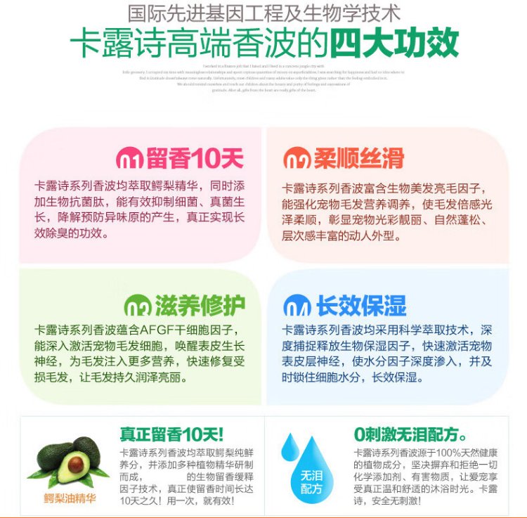 Kalushi Avocado Oil Antibacterial Anti-itch Pet Cleansing Shower Gel 550ml Teddy Golden Retriever Cat Pet Special Supplies