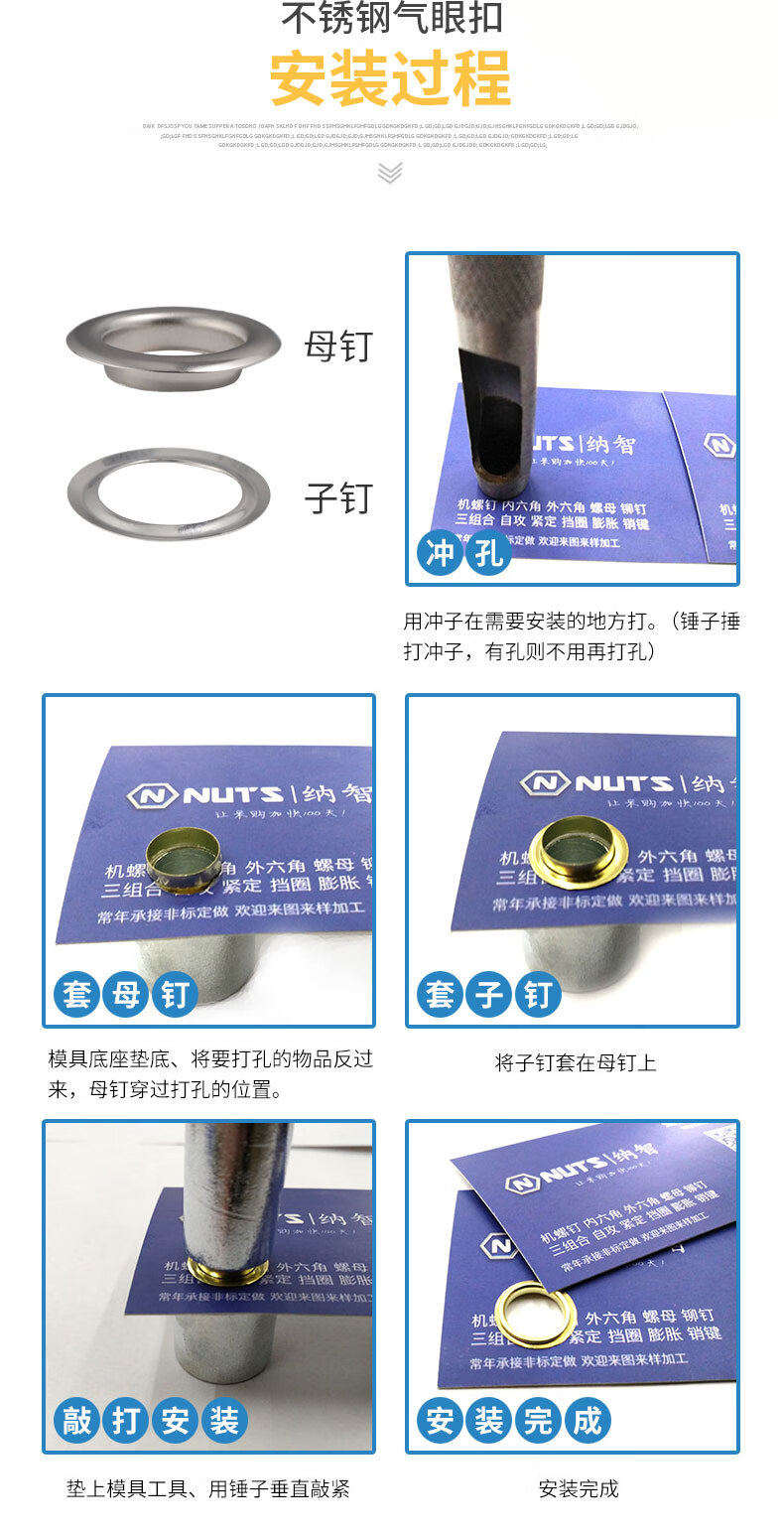 Jinggong stainless steel air eye button, anti-rust air eye button, shower curtain, outdoor tent fabric, hollow rivets, inner 4.5mm (outer diameter 7.7/height 3.5), 500 sets