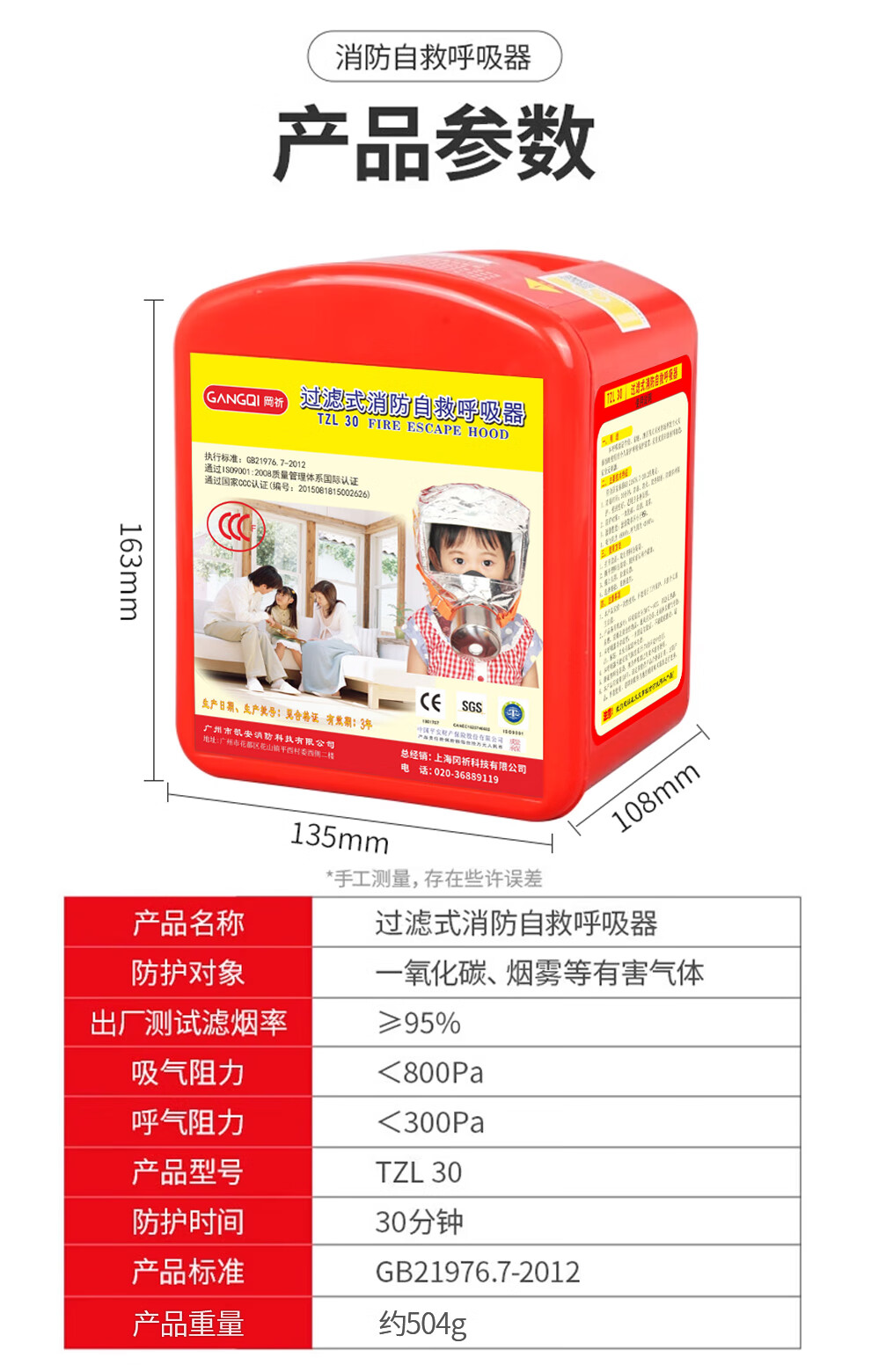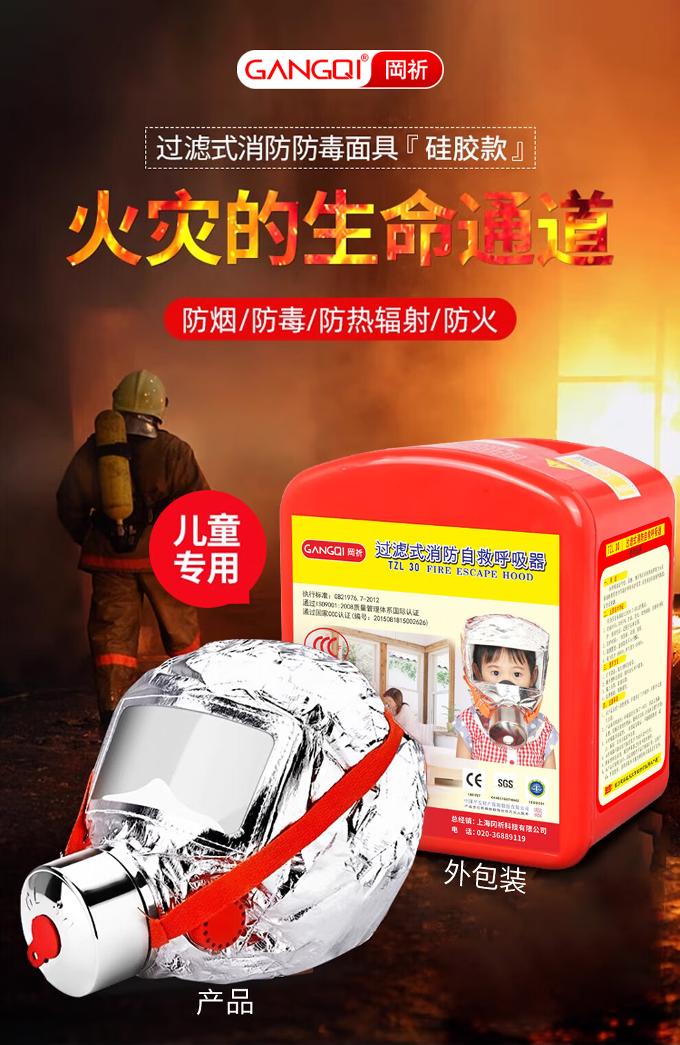 Gangqi gas mask fire mask escape smoke mask self-rescue respirator TZL30 children's model