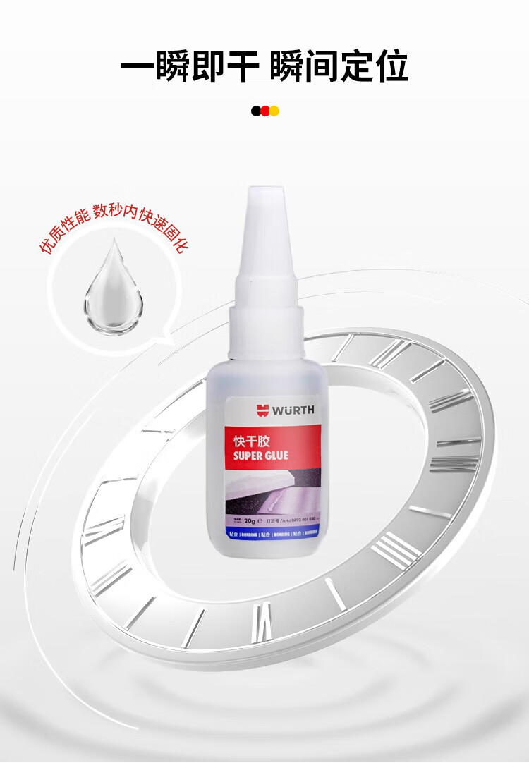 WURTH German brand quick-drying glue strong glue liquid glue 6 seconds instant stick high transparency formula non-universal glue 502 transparent traceless non-whitening 2 bottles