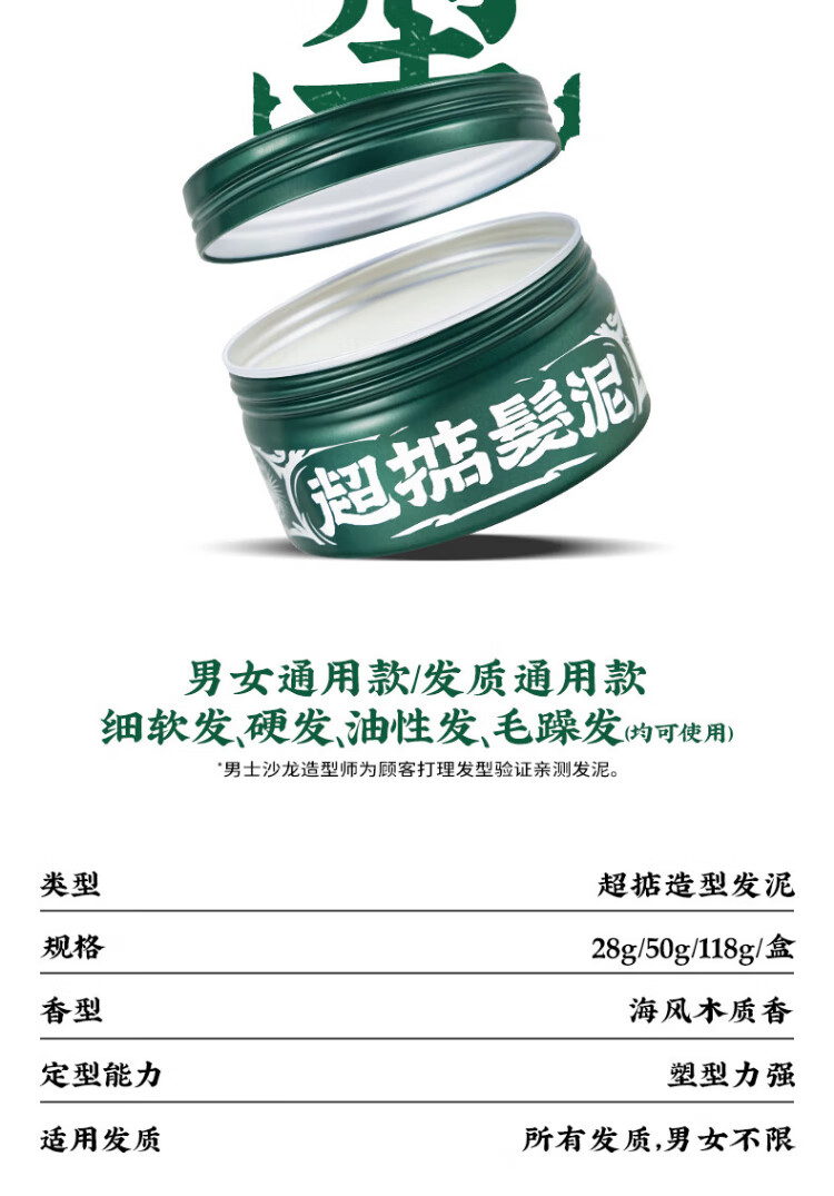 Ultra-weight matte shaping hair mud 118g fluffy natural styling hair cream hair wax hair gel refreshing and long-lasting for men and women