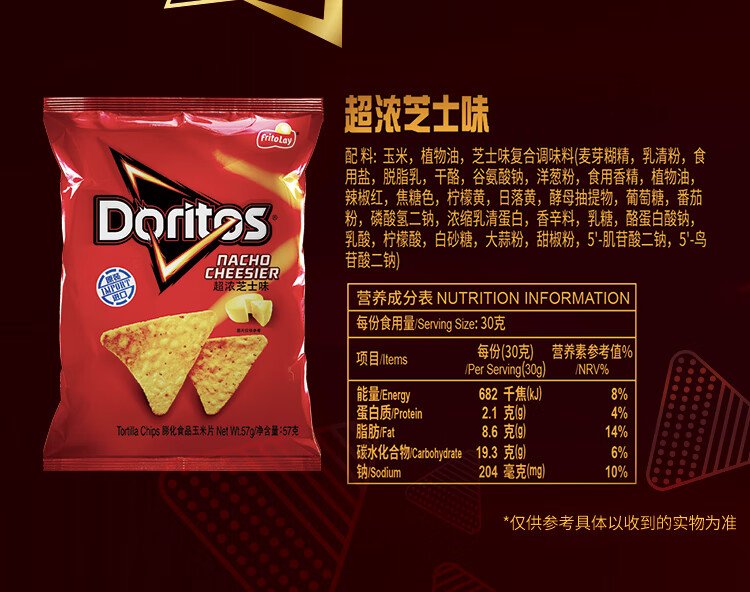 Doritos Super Rich Cheese Flavored Corn Flakes 57g*2 Made in Taiwan Original Reproduction of the American Version Flavor TV Drama Snacks