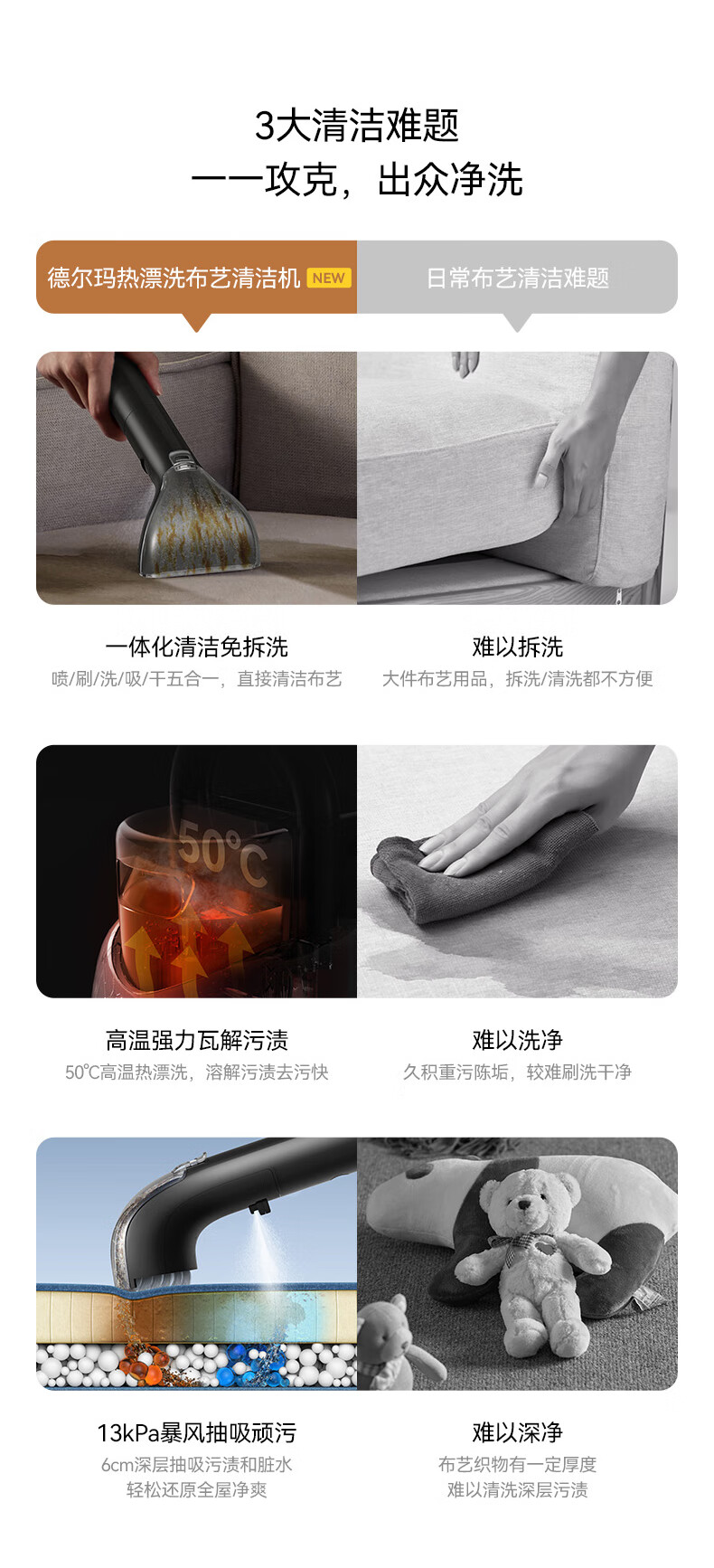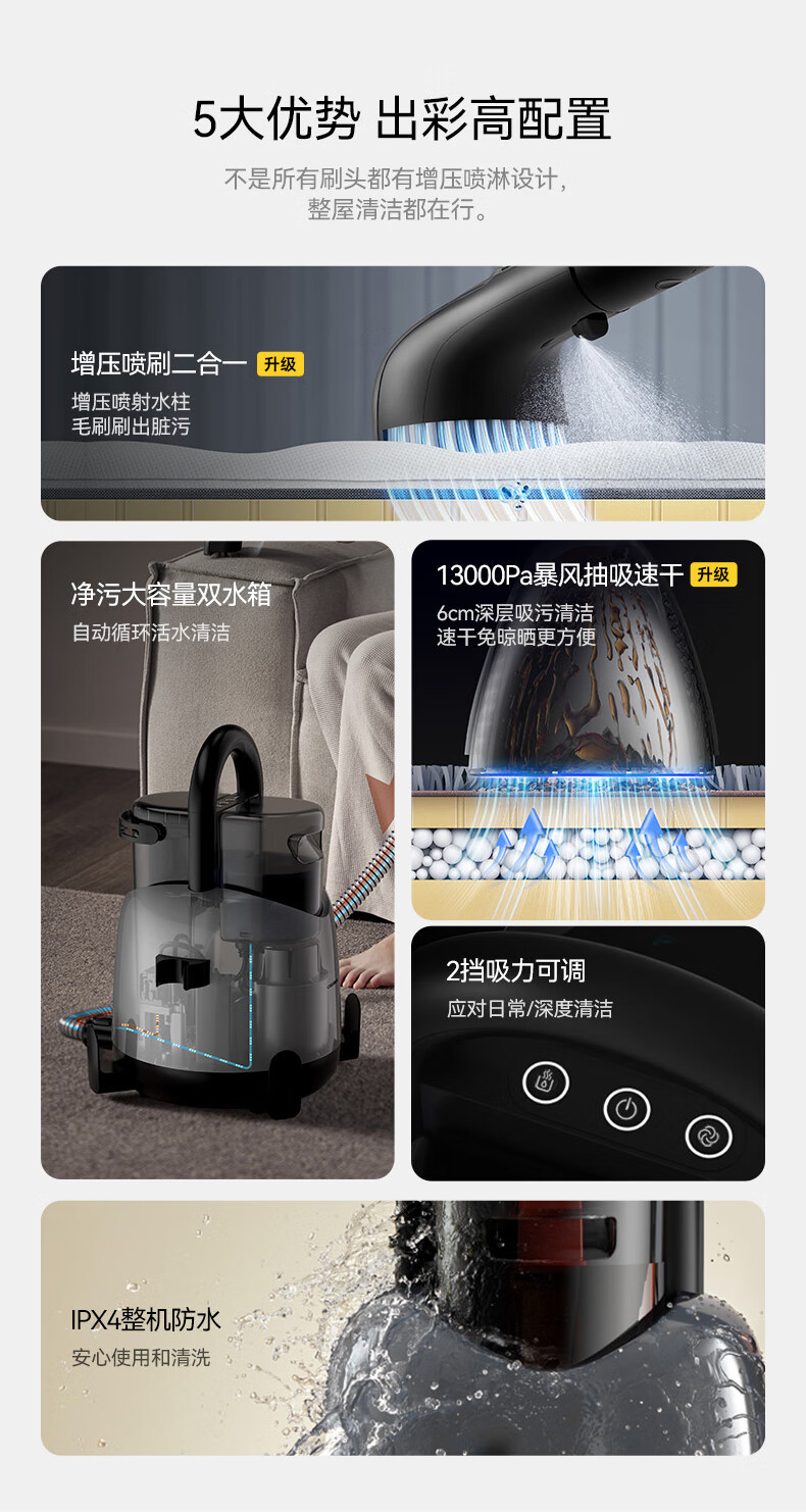 Deerma (Deerma) low price fabric cleaning machine BY200 S high temperature hot water high pressure cleaning machine carpet washing sofa mattress range hood window cleaning whole house cleaning multi-functional artifact