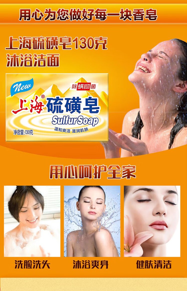 Shanghai soap sulfur soap soap mite removal shower gel bath shampoo hair wash face shampoo oil control neutral skin-friendly soap