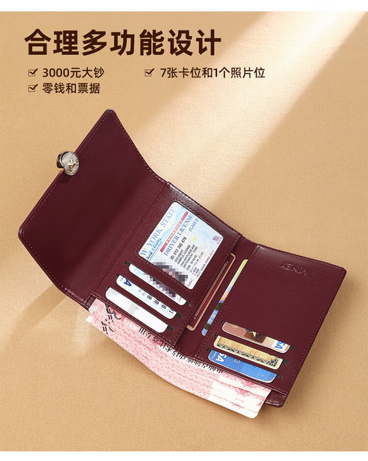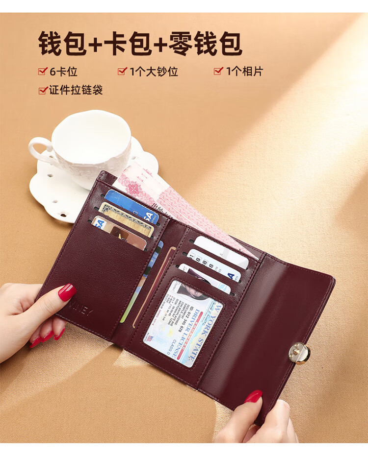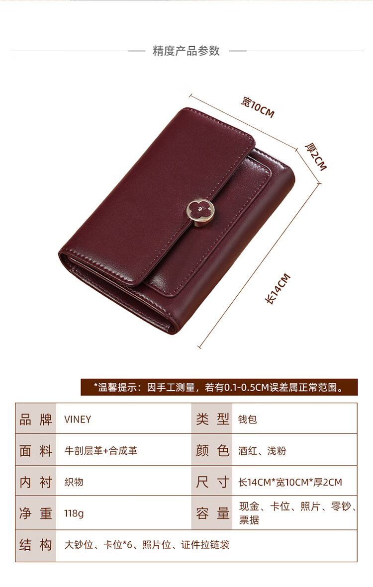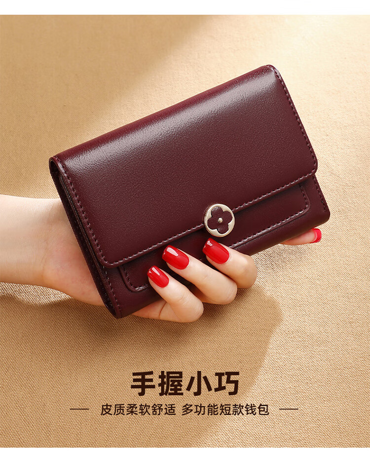 Viney cowhide women's wallet large capacity short clutch bag student multi-card slot coin purse foreign style light luxury wallet wallet