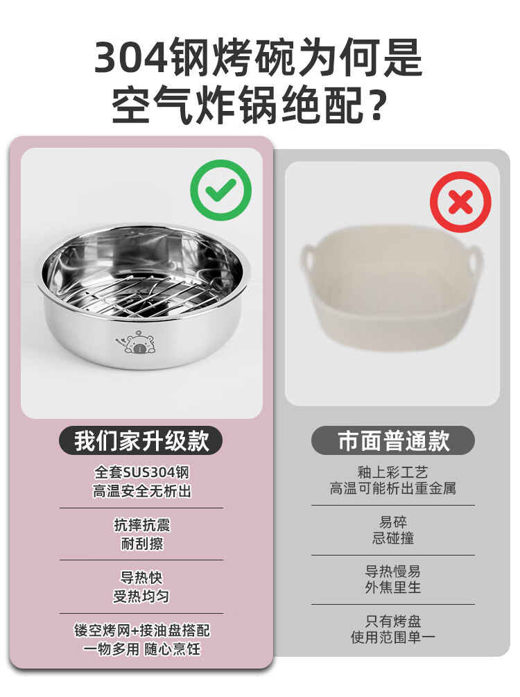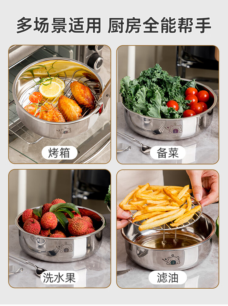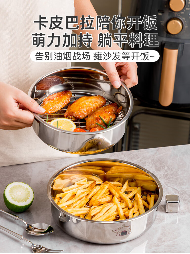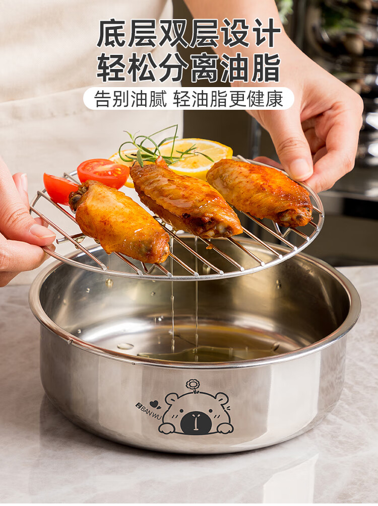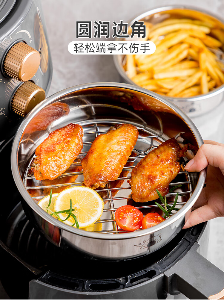 Banwu Life 304 stainless steel air fryer baking pan special utensils high temperature resistant baking bowl plate tray grease trap drain pan