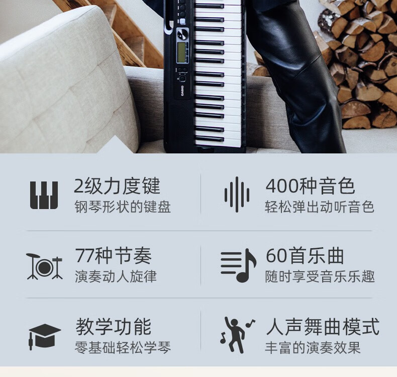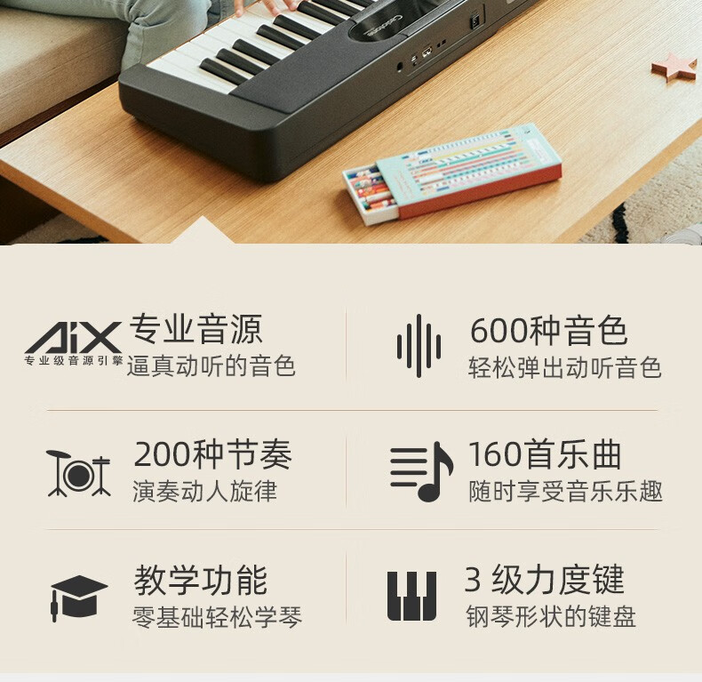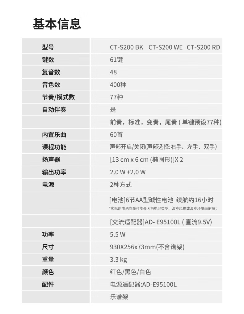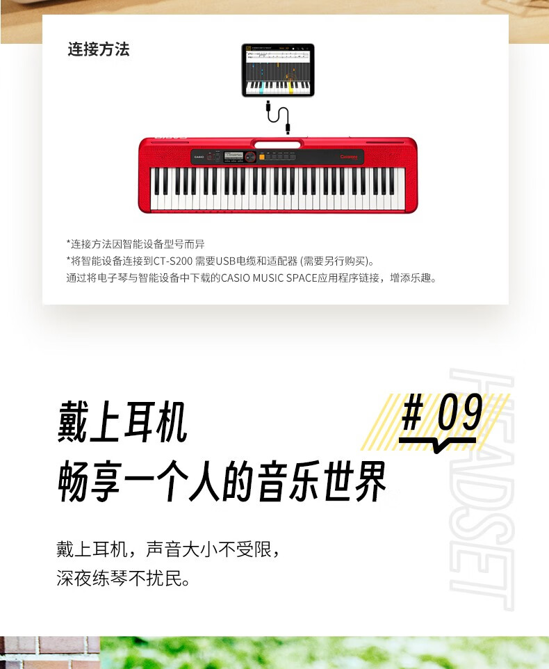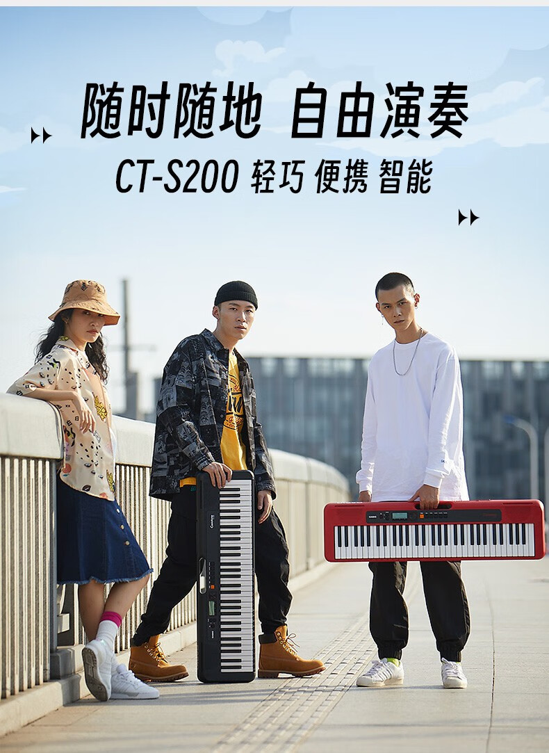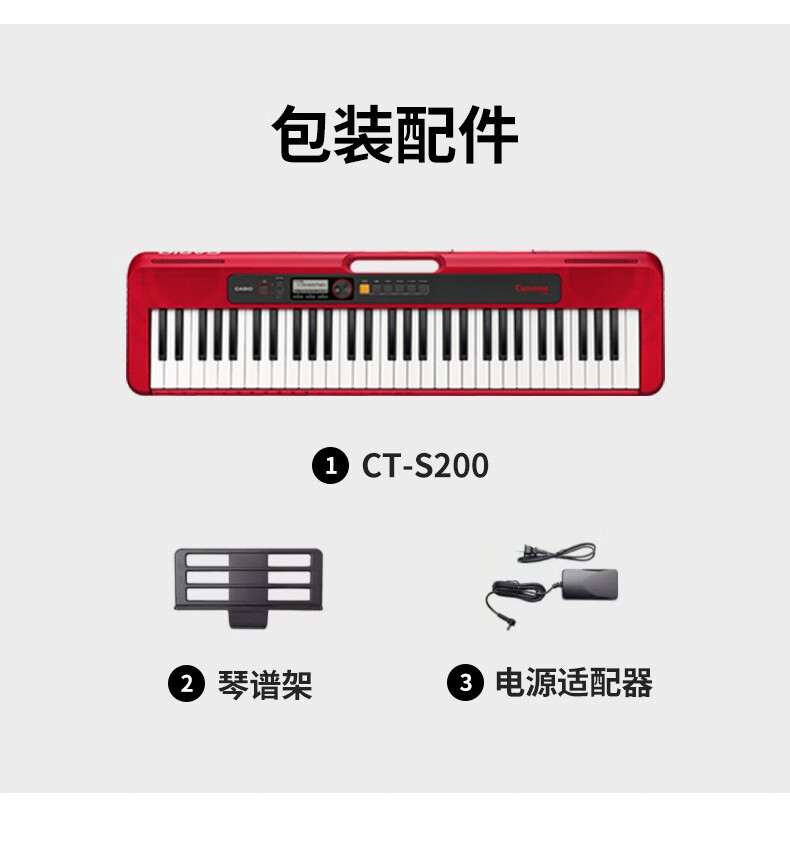 Casio (CASIO) electronic keyboard adult CT-S series portable beginners home 61-key teaching training playing smart children CT-S200 white + portable X stand