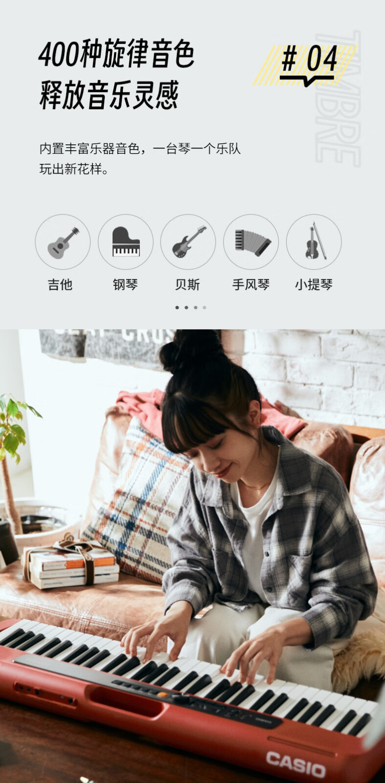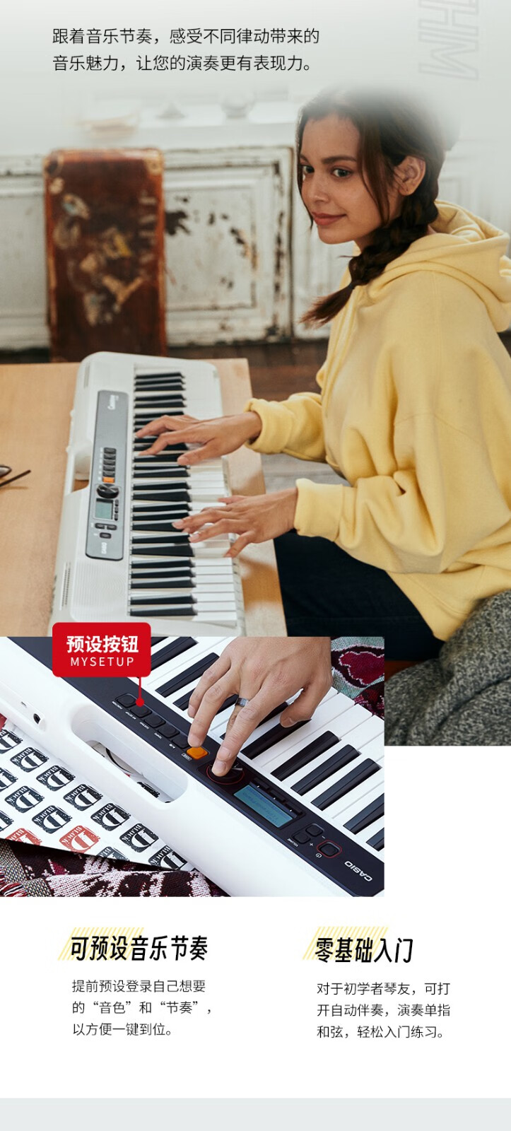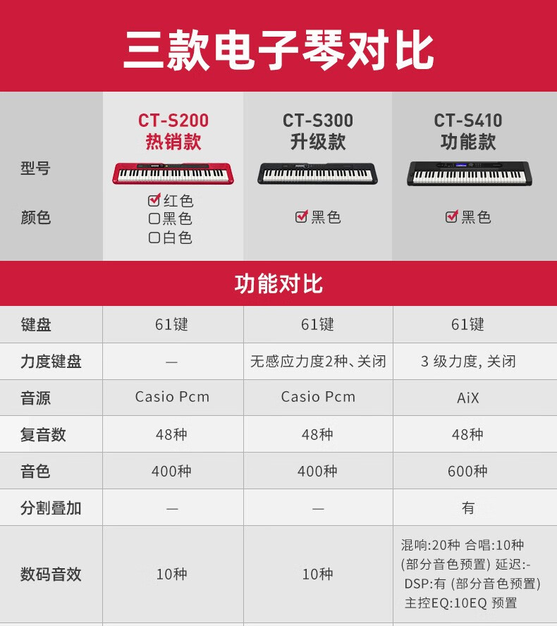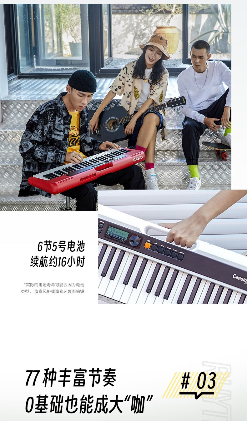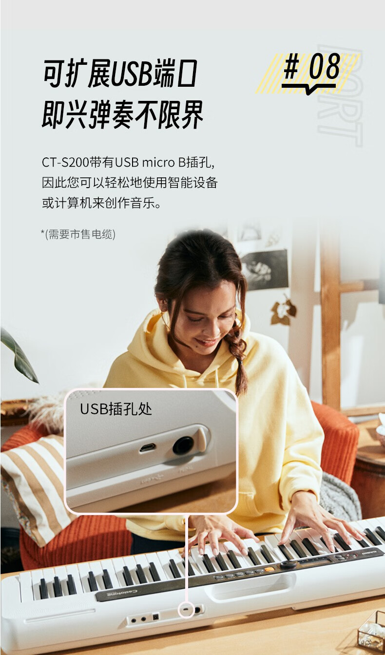 Casio (CASIO) electronic keyboard adult CT-S series portable beginners home 61-key teaching training playing smart children CT-S200 white + portable X stand
