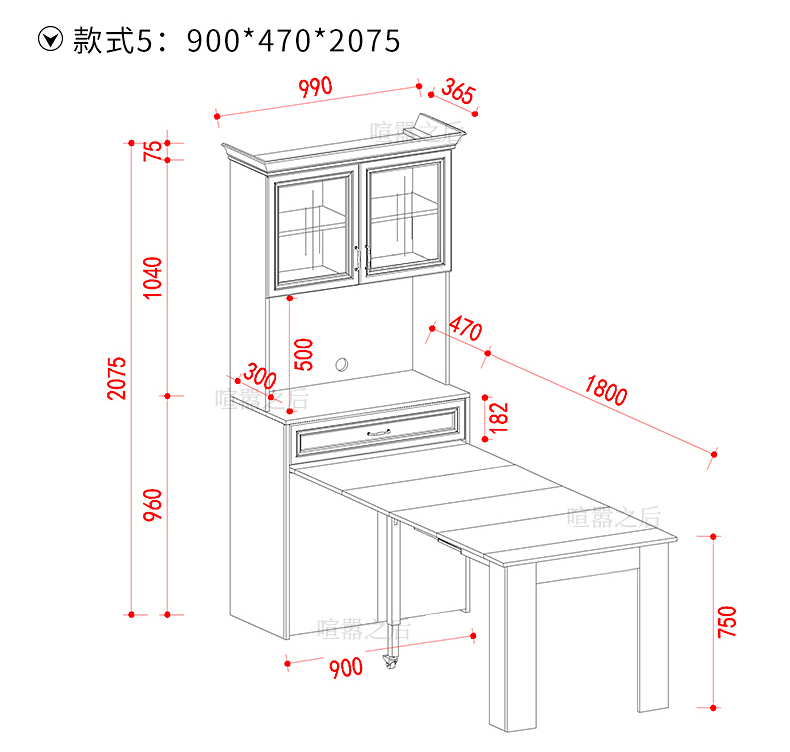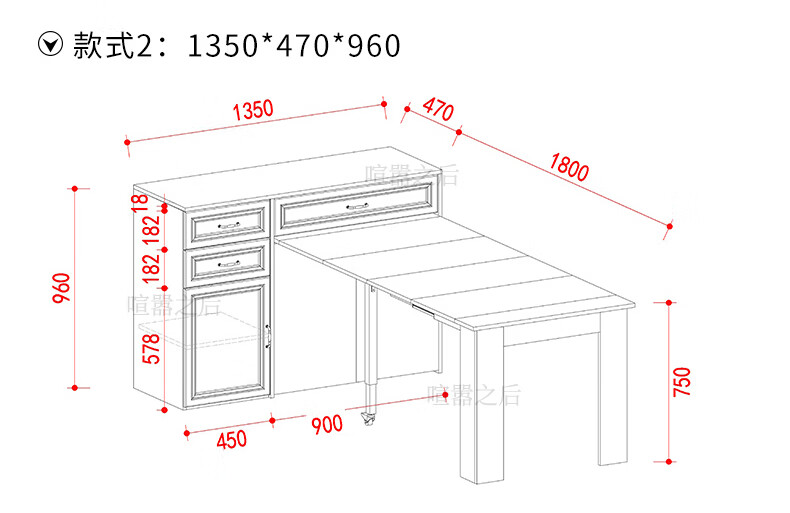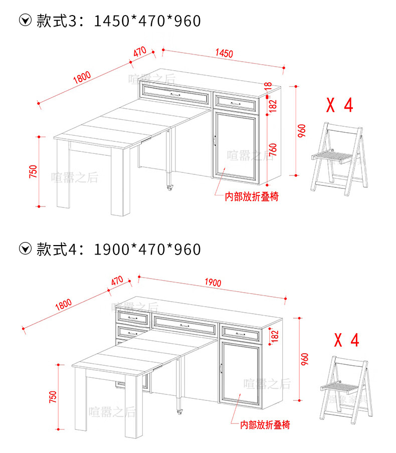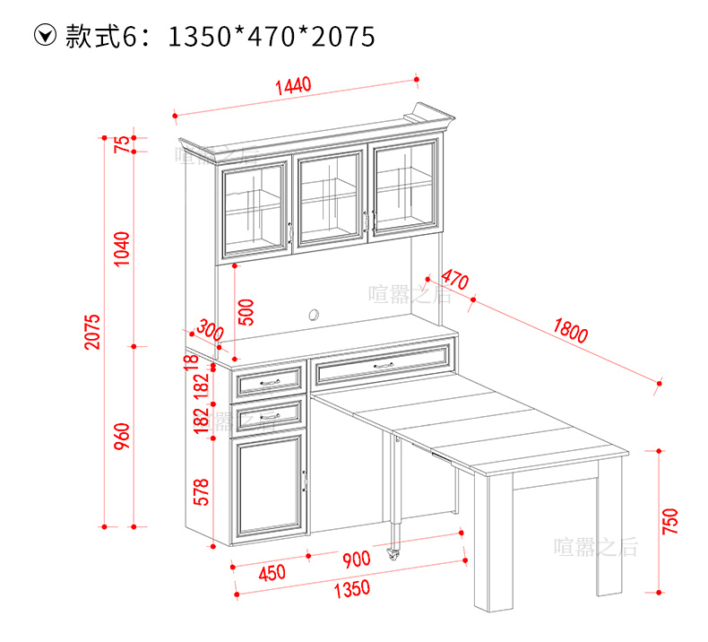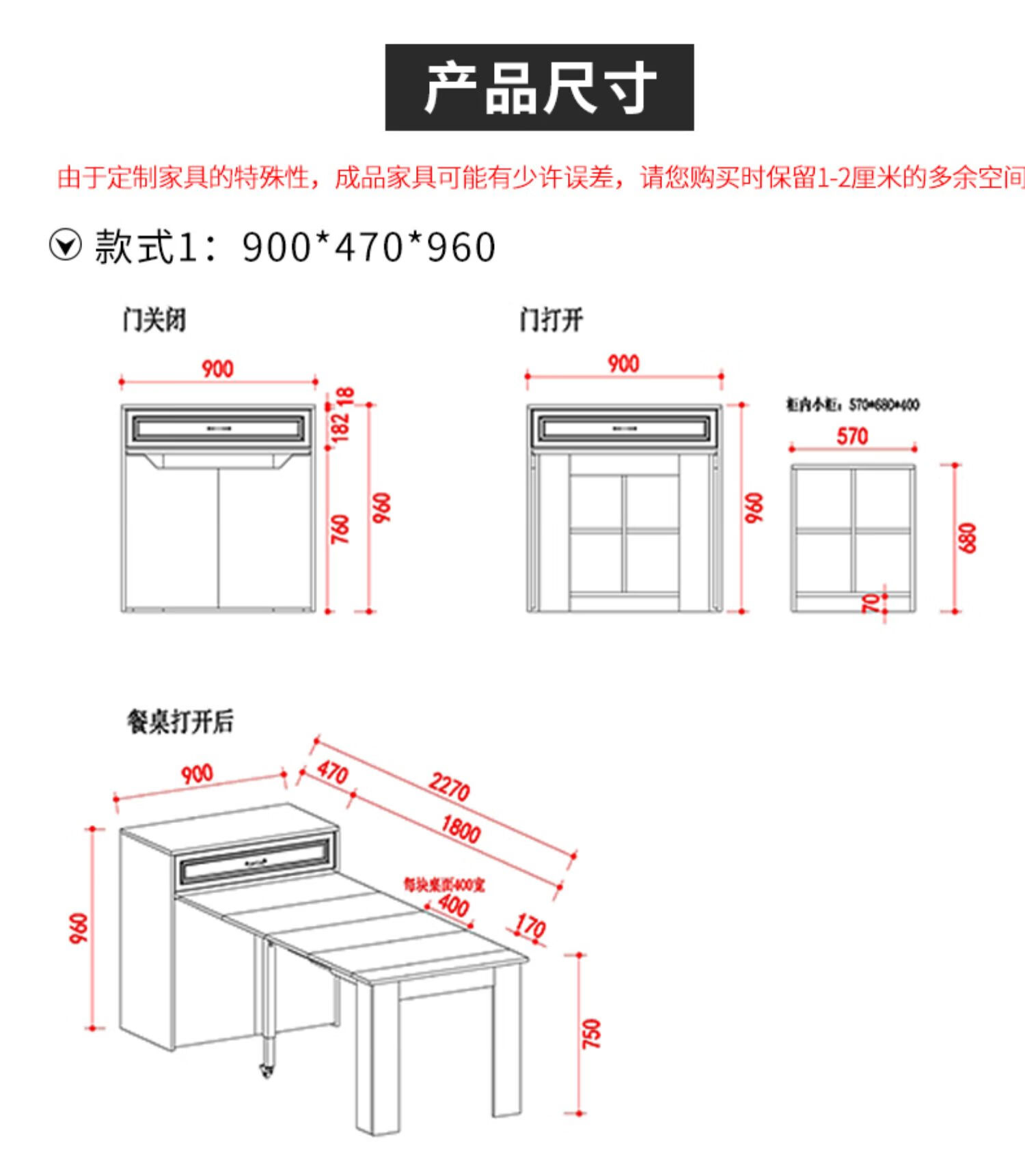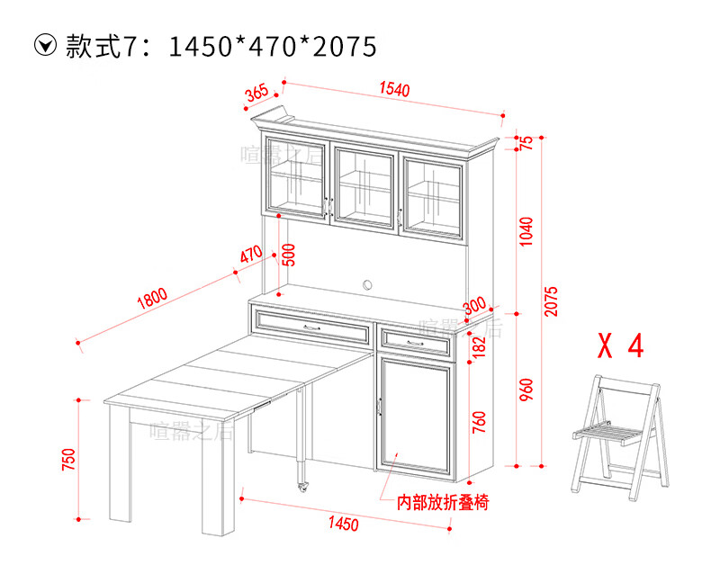 After the Hustle Simple Sideboard Folding Dining Table Combination Integrated Kitchen Shrinking Dining Table Restaurant Shelf High Cabinet Customization Style 3 1450*470*960
