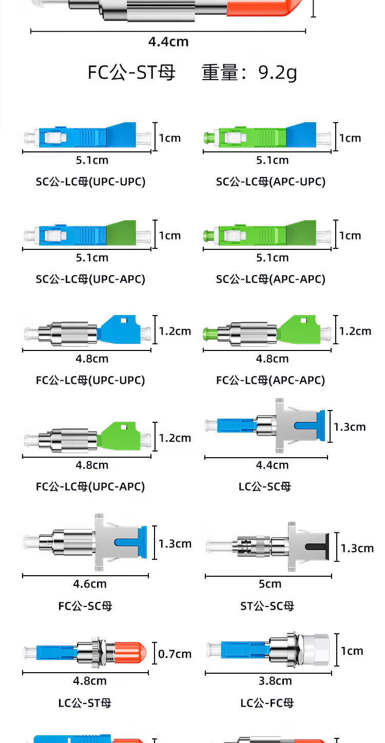 Sai fiber fiber optic adapter FC-ST male and female head carrier grade fiber optic coupler round to square head optical power red light pen docking connector flange extender