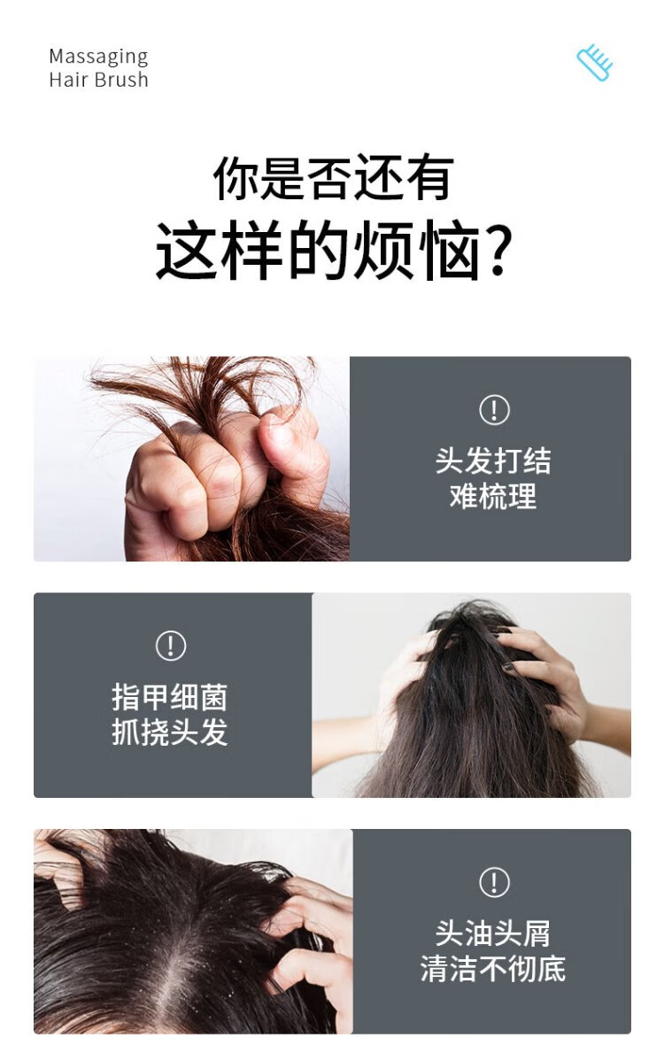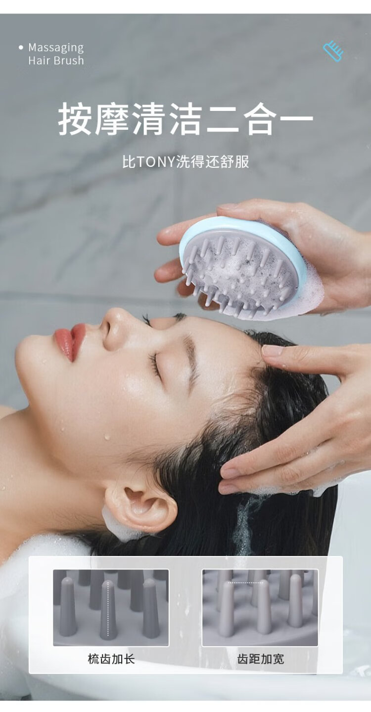 Jie Liya (Grace) shampoo brush, scalp cleansing brush, anti-itching brush, special head massage comb for men and women, l two pack, blue and purple
