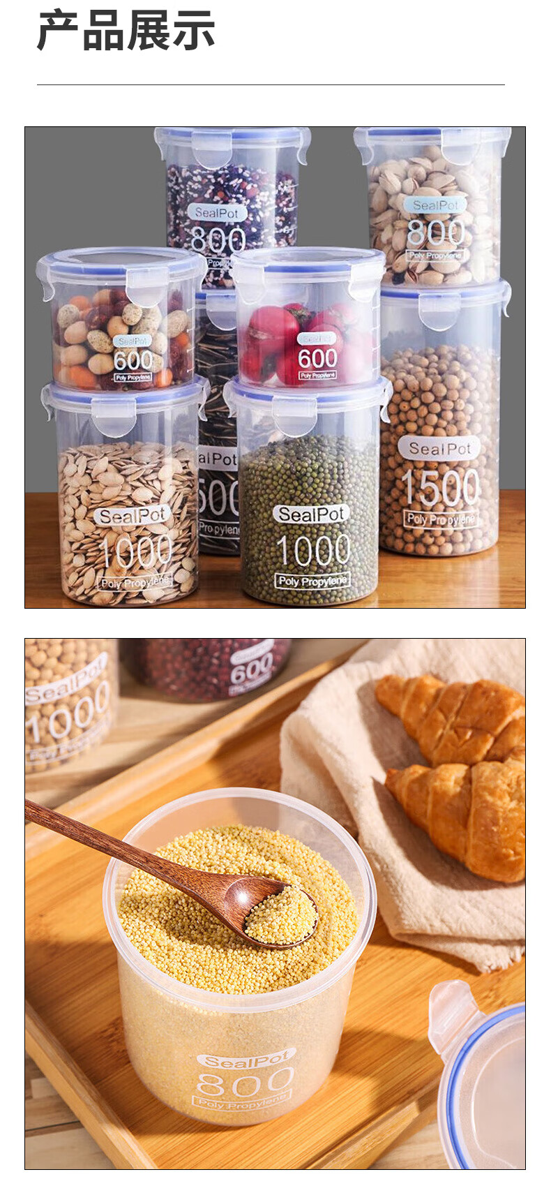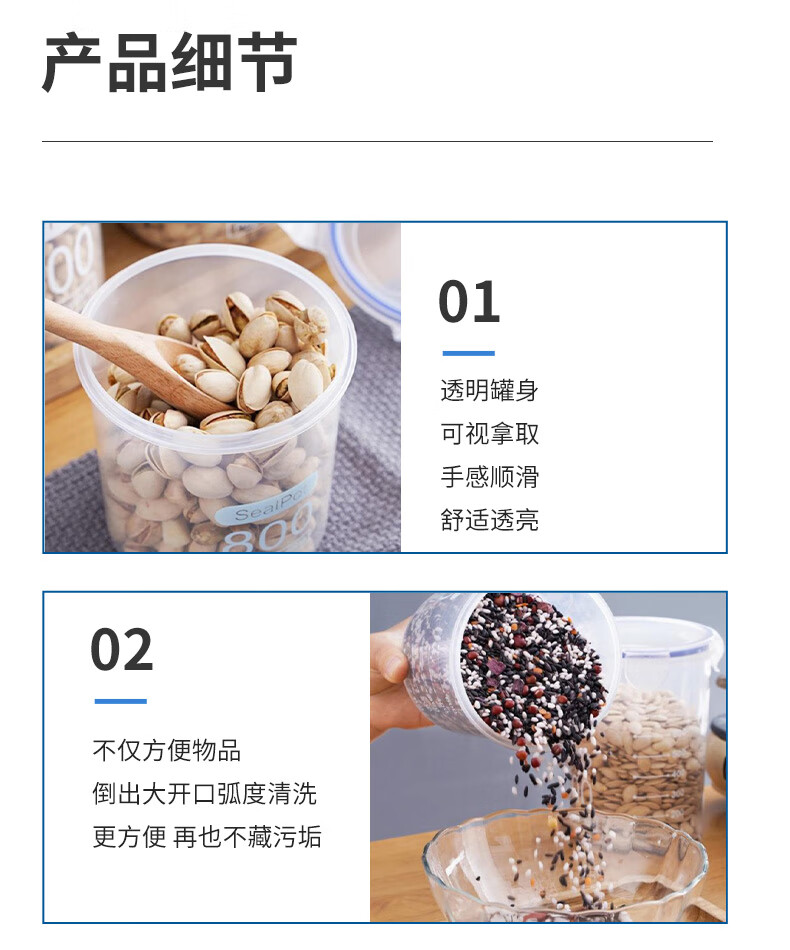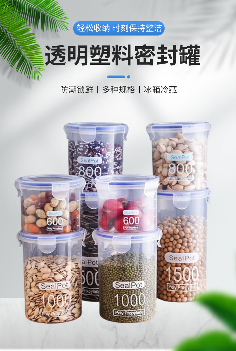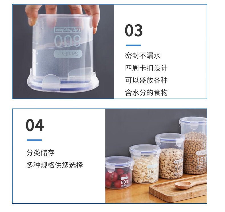 Yilan food storage box storage jar plastic jar kitchen storage jar storage jar grain buckle sealed jar 800ml 5 pieces YL3572