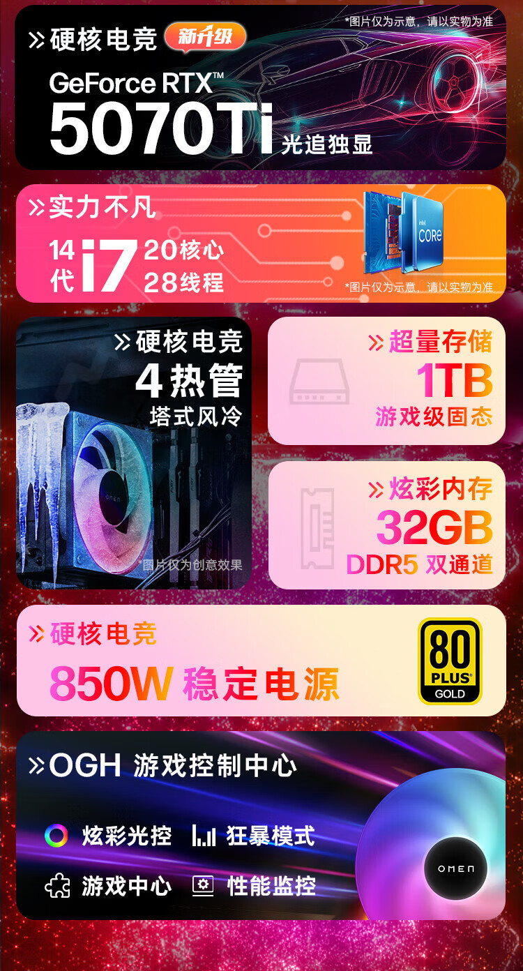 95% new HP HP Shadow Elf 11 desktop computer gaming desktop host 14th generation i7F RTX5070ti 16G independent display 32GDDR5 1T 850W single host