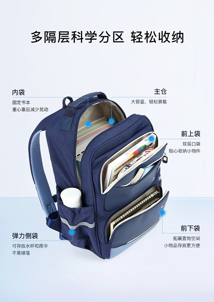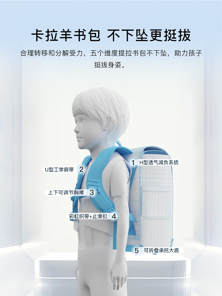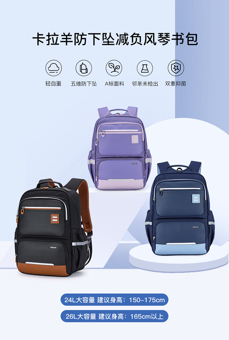 Kara Sheep Junior High School School Bag Large Capacity Five-Dimensional Burden-Reducing Anti-Falling Primary School Students Grade 4-6 Men's and Women's Stress Reducing Backpack