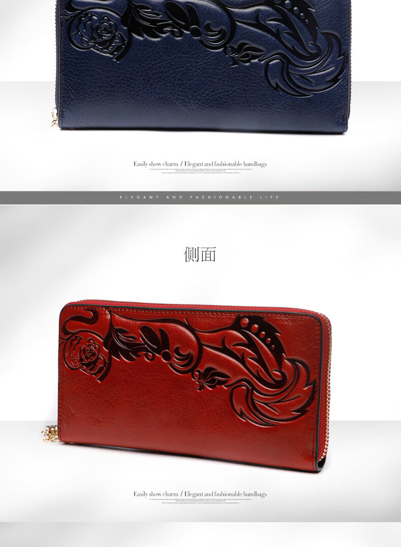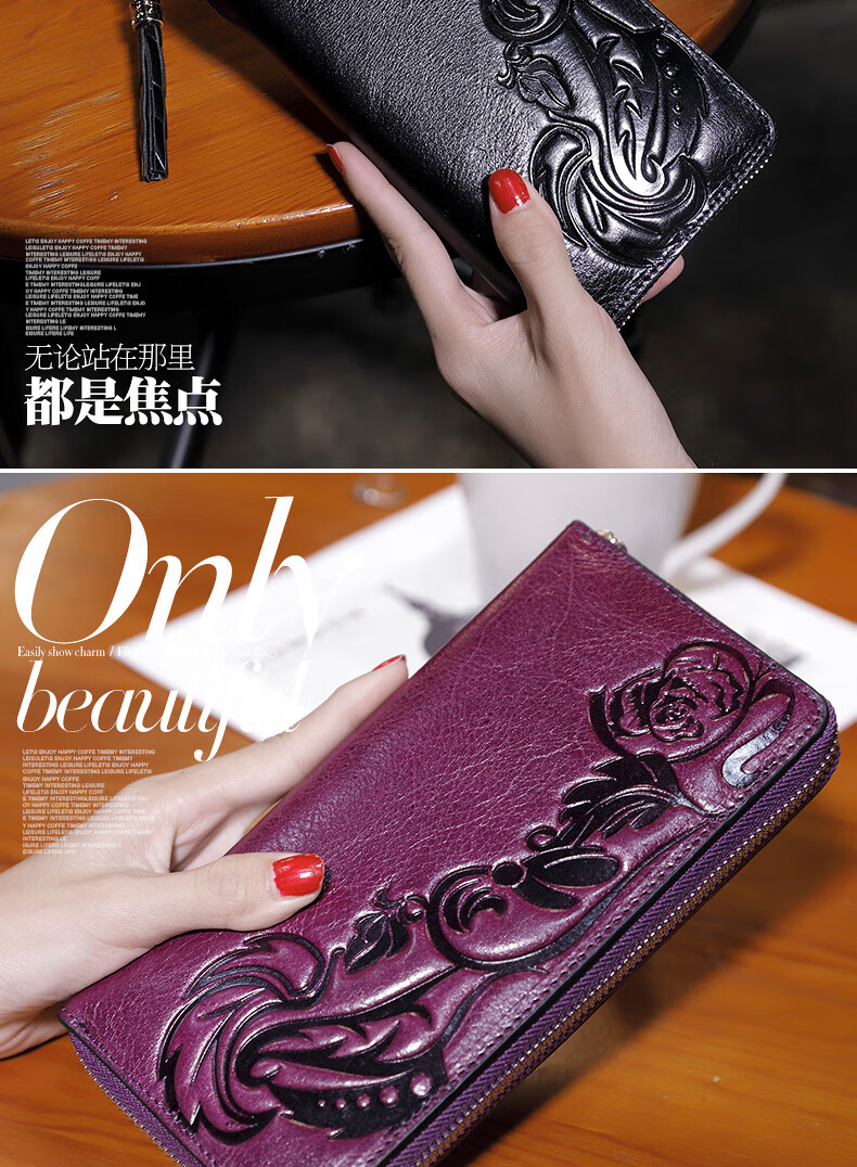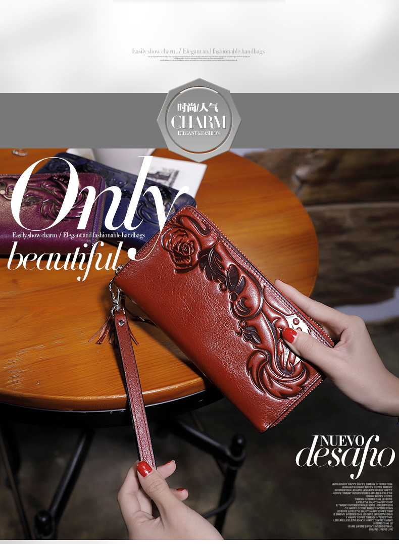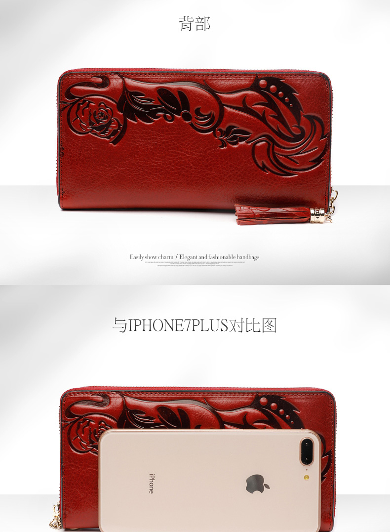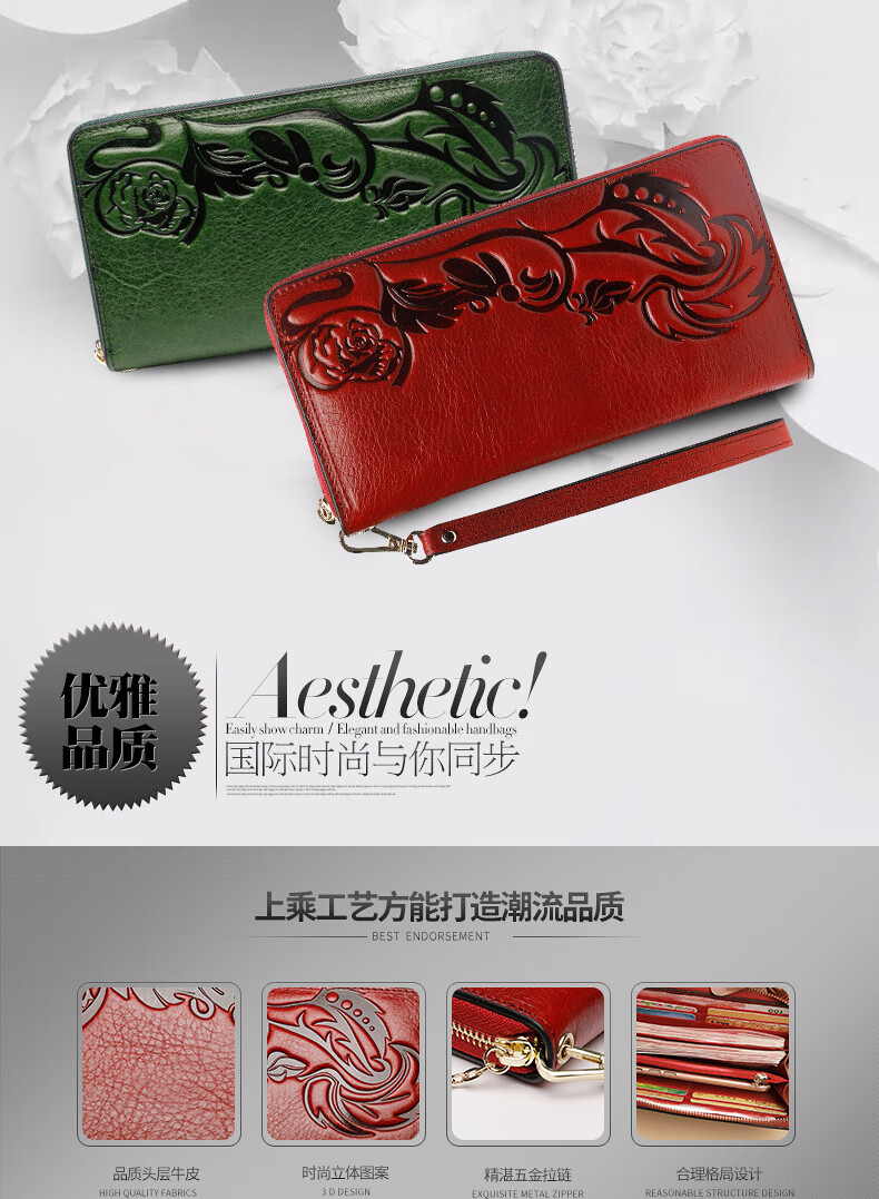 Sephoron Genuine Leather Long Zipper Wallet Women's 2026 New Genuine Leather Handbag Valentine's Day Mobile Phone Soft Cowhide Hand Wallet Red
