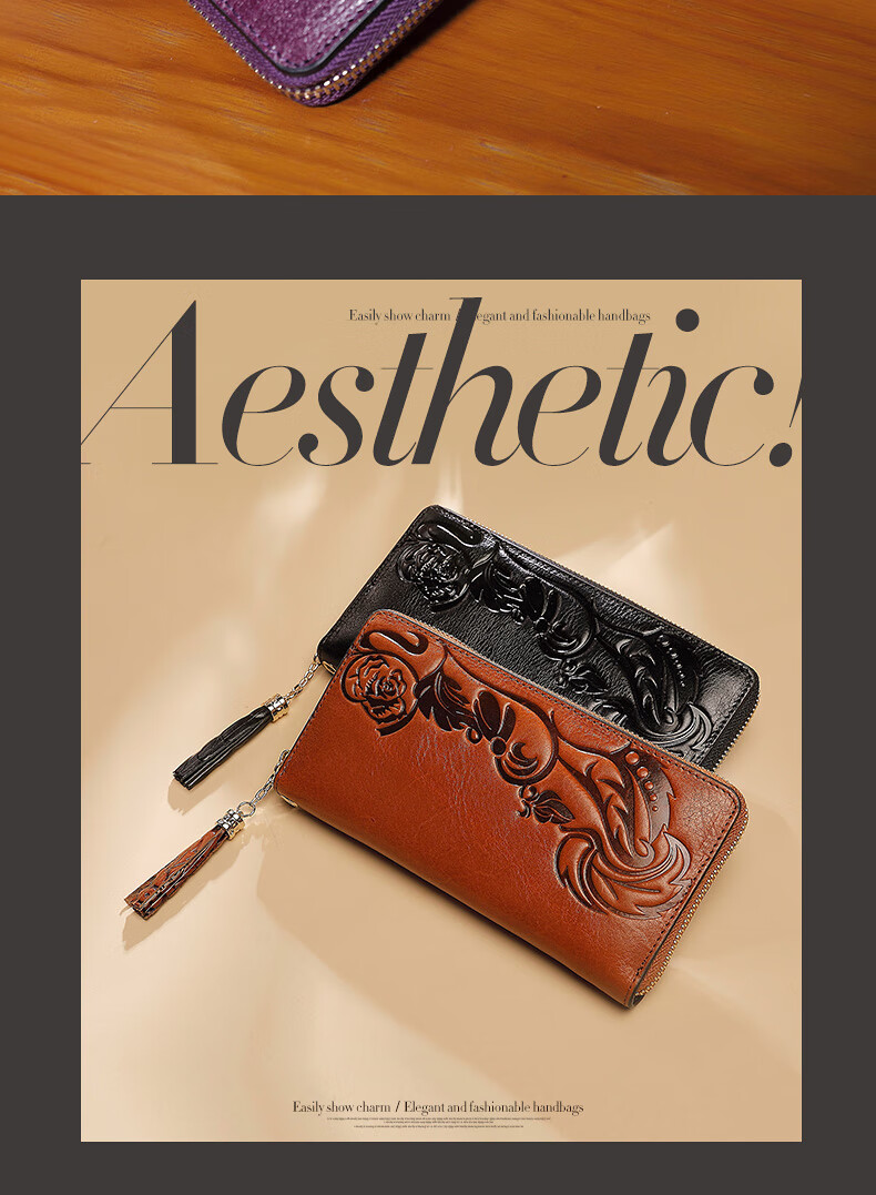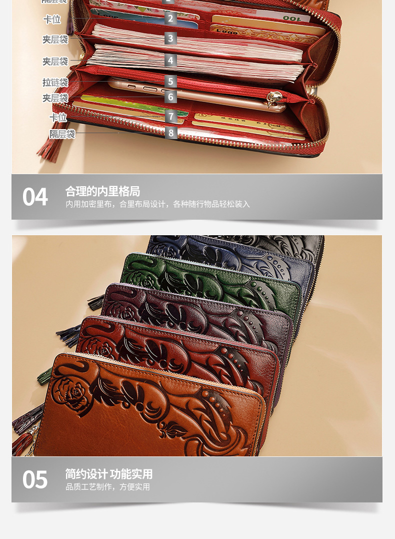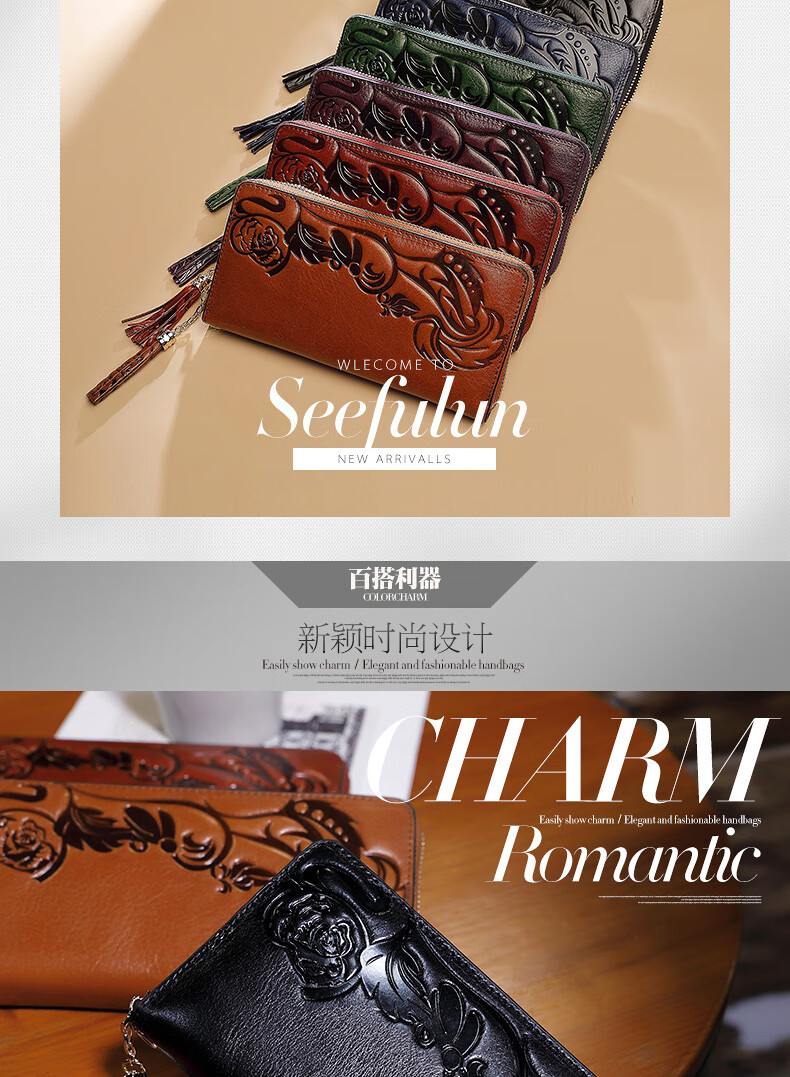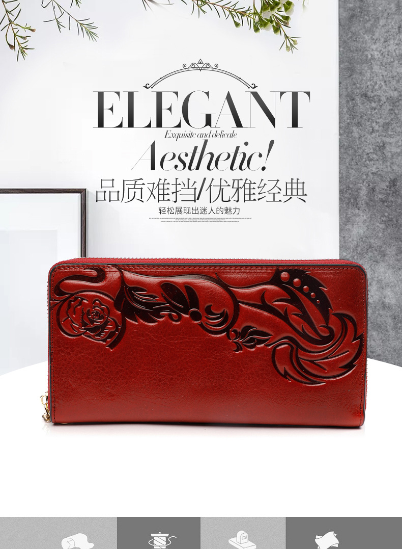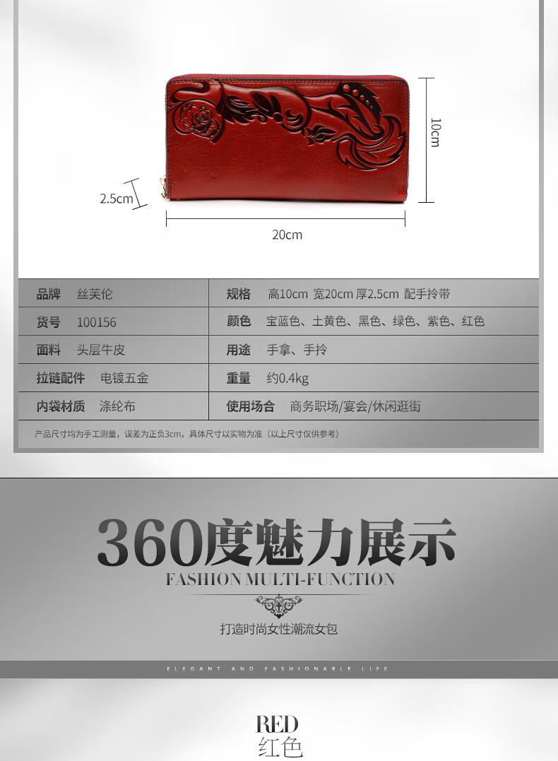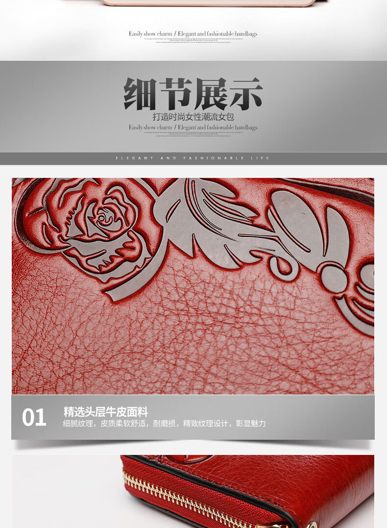 Sephoron Genuine Leather Long Zipper Wallet Women's 2026 New Genuine Leather Handbag Valentine's Day Mobile Phone Soft Cowhide Hand Wallet Red