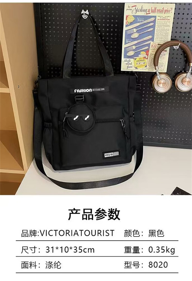 VICTORIATOURIST school bag for middle and high school students, large-capacity tutoring bag, good-looking lightweight crossbody bag, tutoring bag, book carrying student tote bag