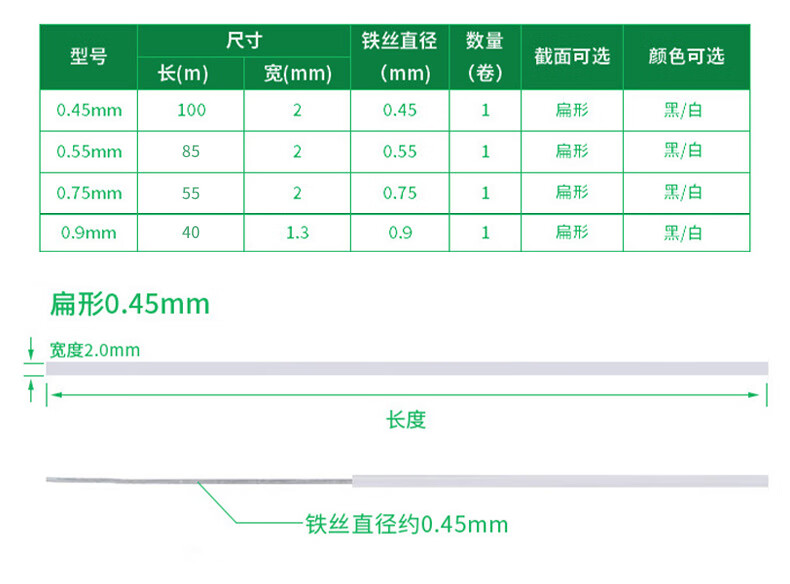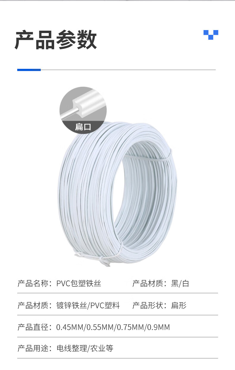 Yilan wire-wrapped plastic galvanized bundling packaging iron tie industrial binding line PVC plastic-coated iron wire flat roll wire diameter 0.75mm black flat (55 meters) *2 YL3755