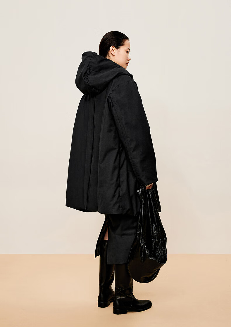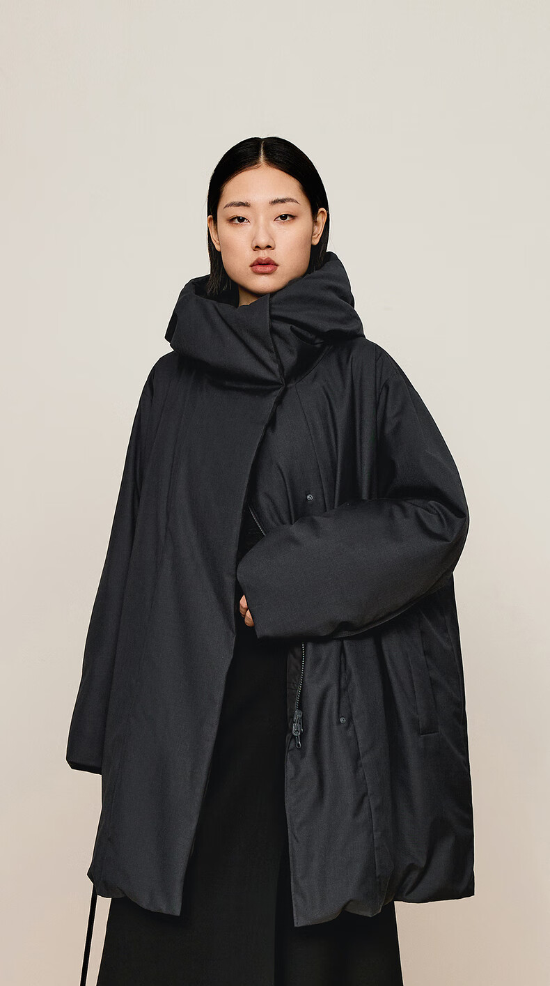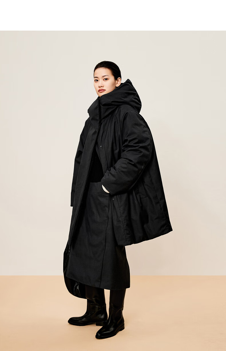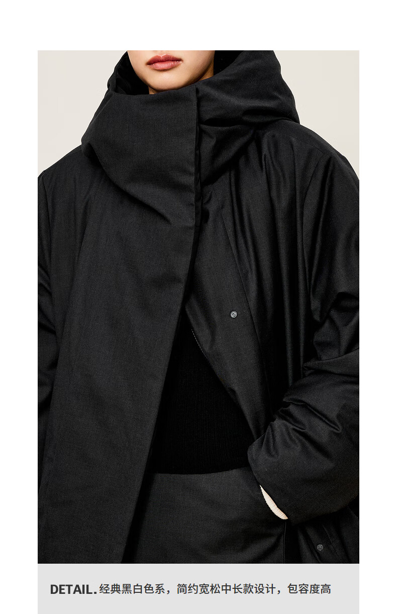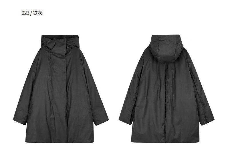 LESS 2024 winter new hooded loose mid-length down jacket 2O0C12740 023 iron gray M