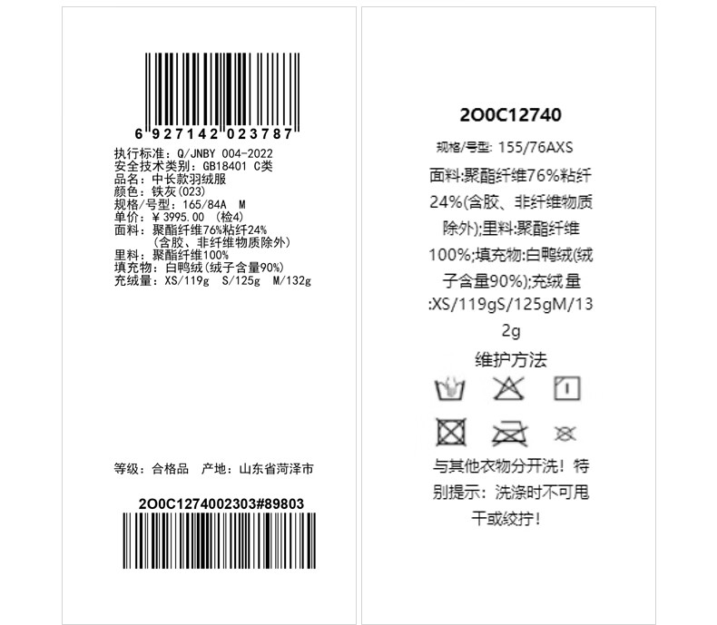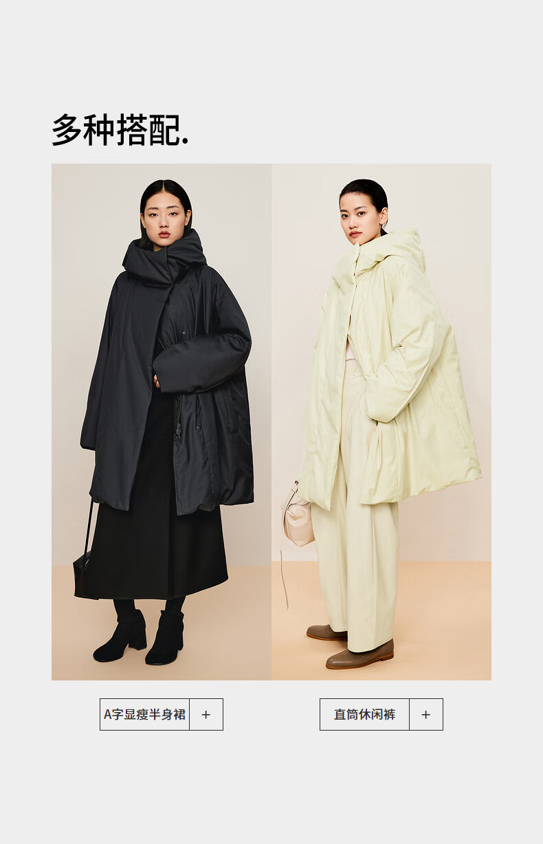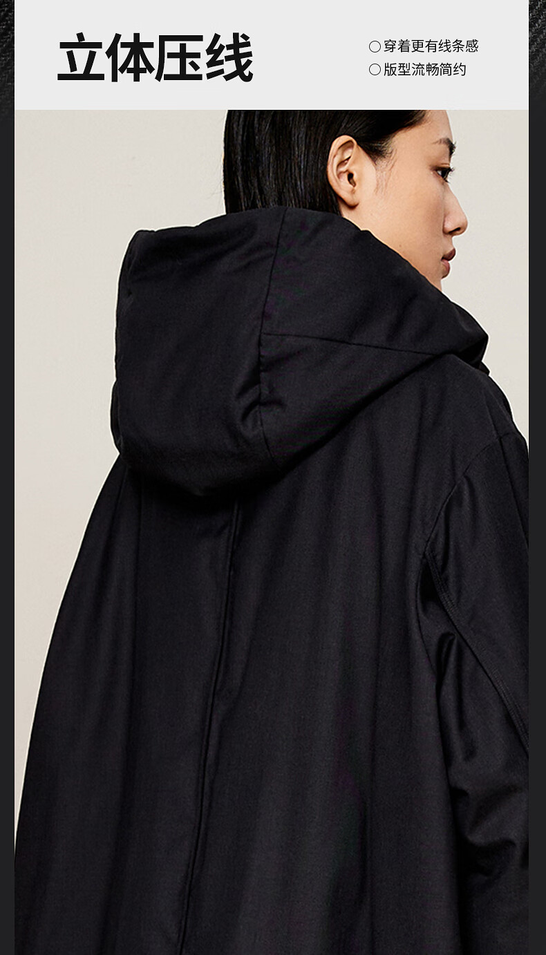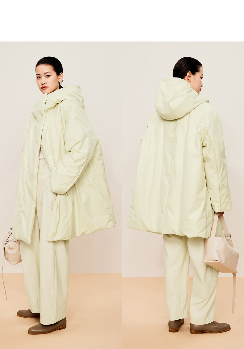 LESS 2024 winter new hooded loose mid-length down jacket 2O0C12740 023 iron gray M