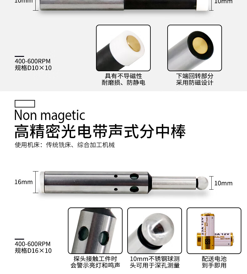 Juerou high-precision centering rod, non-magnetic ceramic photoelectric buzzer, anti-magnetic direct-rising ceramic centering rod (2 pieces)
