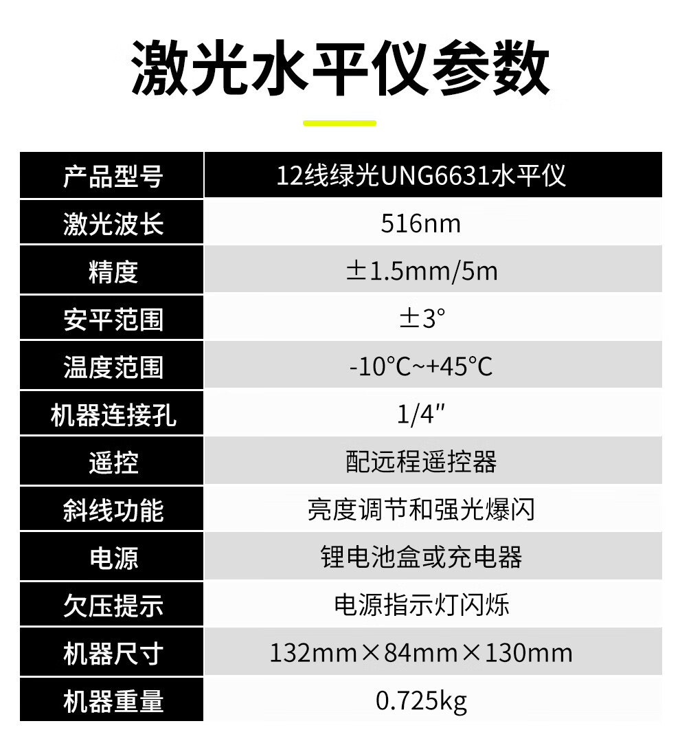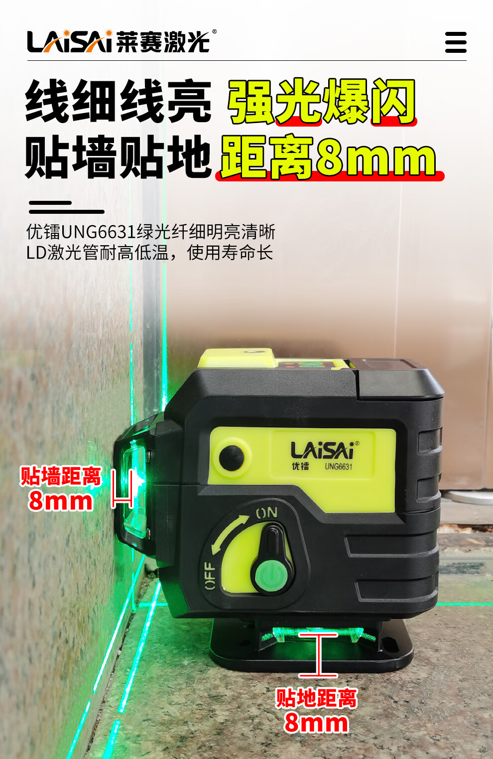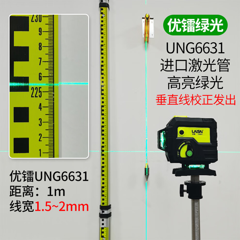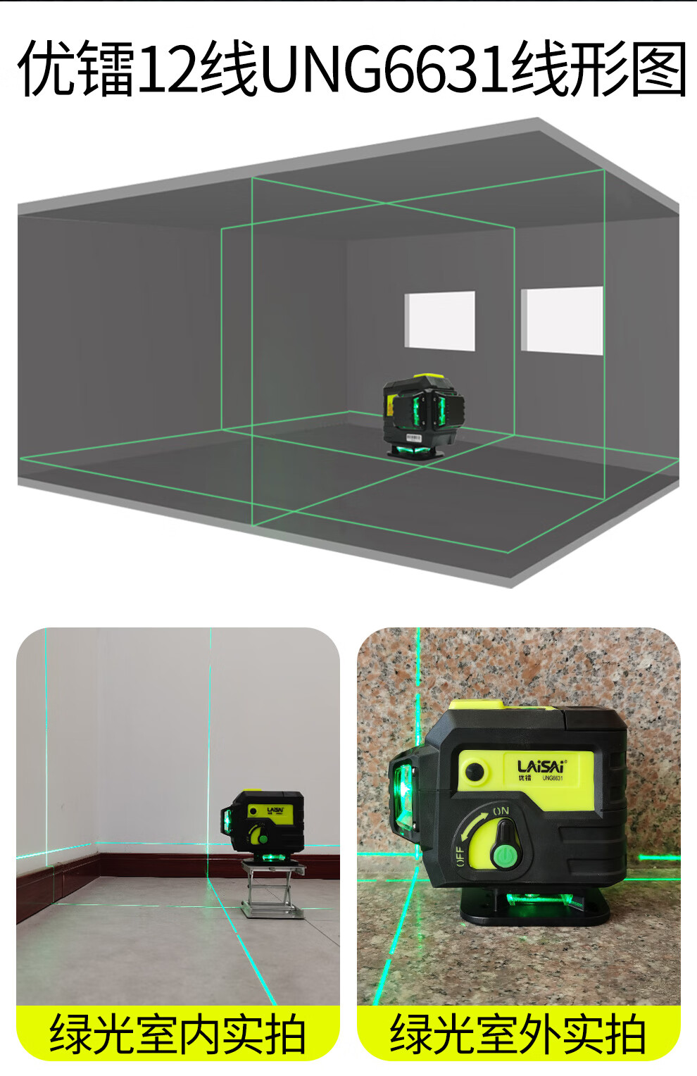 莱赛激光 莱赛红外线水平仪蓝光绿光12线贴墙贴地仪优镭6631强光高精度 12线双小锂电,贴墙贴地UNG6631