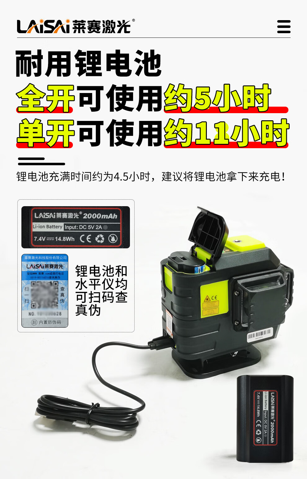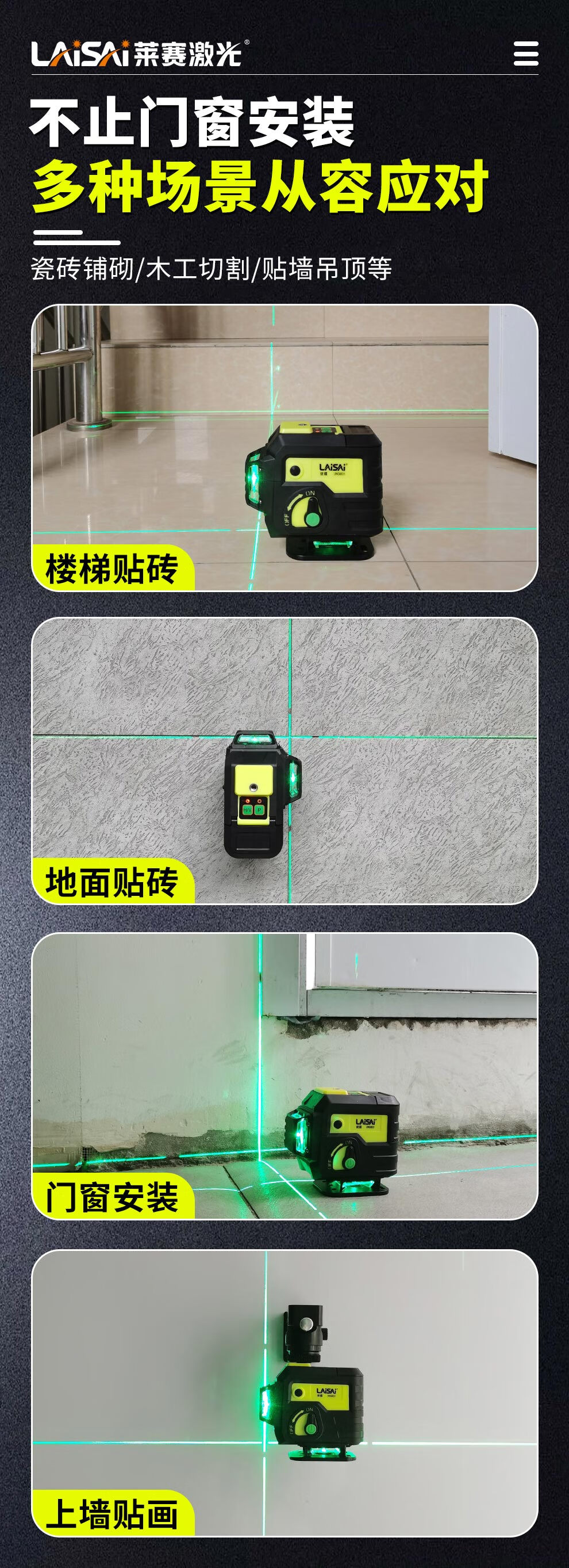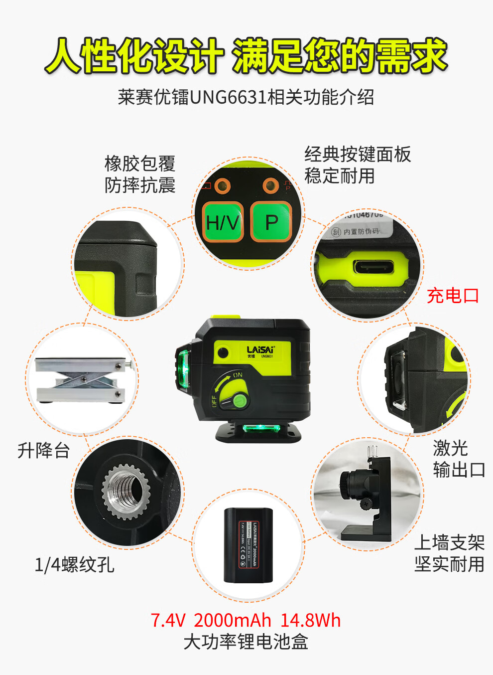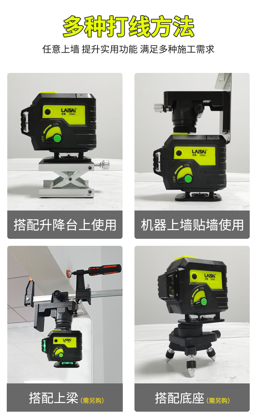 莱赛激光 莱赛红外线水平仪蓝光绿光12线贴墙贴地仪优镭6631强光高精度 12线双小锂电,贴墙贴地UNG6631