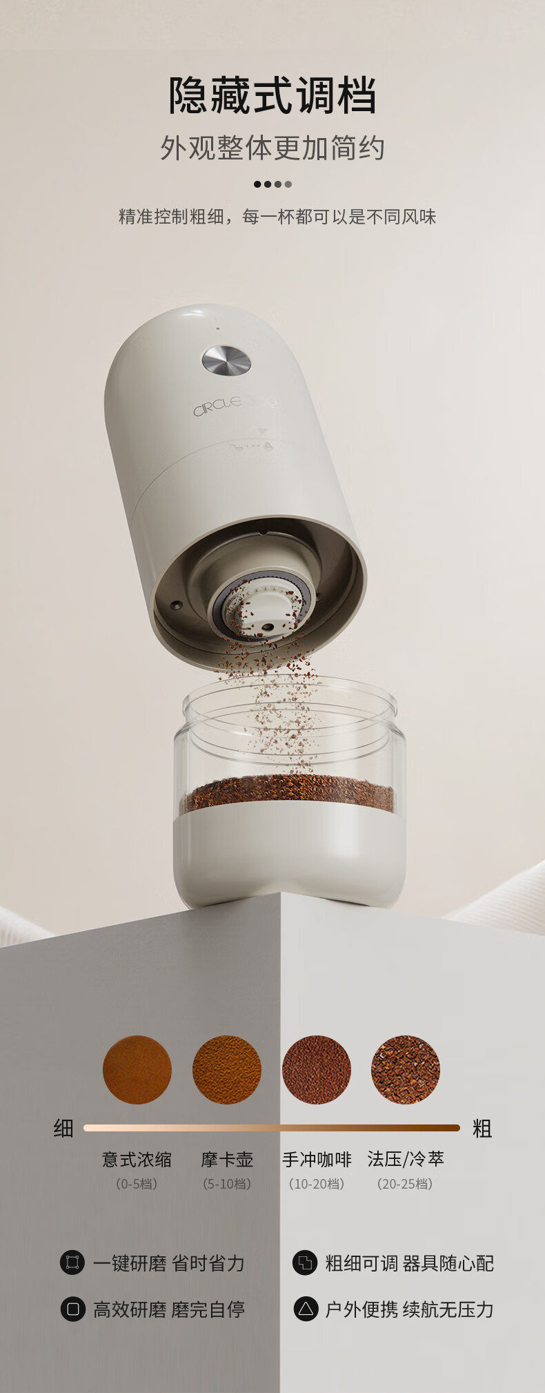 Circle Joy Electric Coffee Grinder Hand-Cranked Coffee Bean Grinder Portable Hand-pour Coffee Machine Automatic Powder Grinder