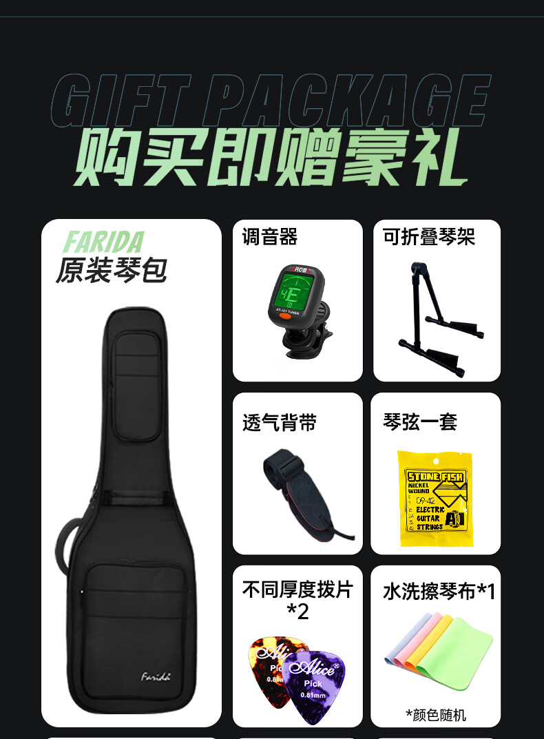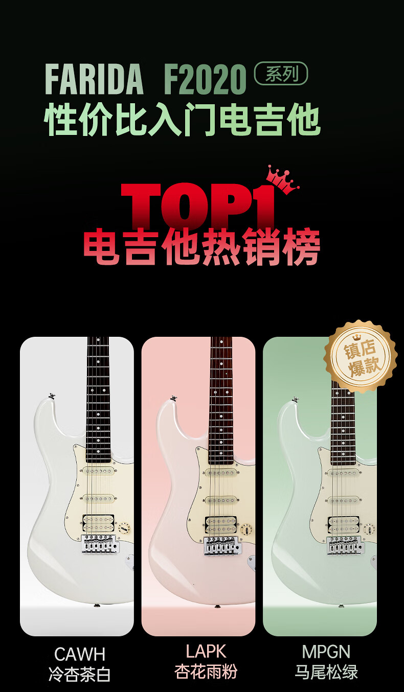 Farida Electric Guitar F5020 F2020 Beginner's Single Rock Single Single Double Electric Guitar 39-inch Metallic White F5020 MWH Single Single Double