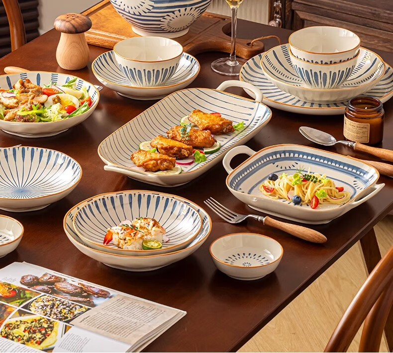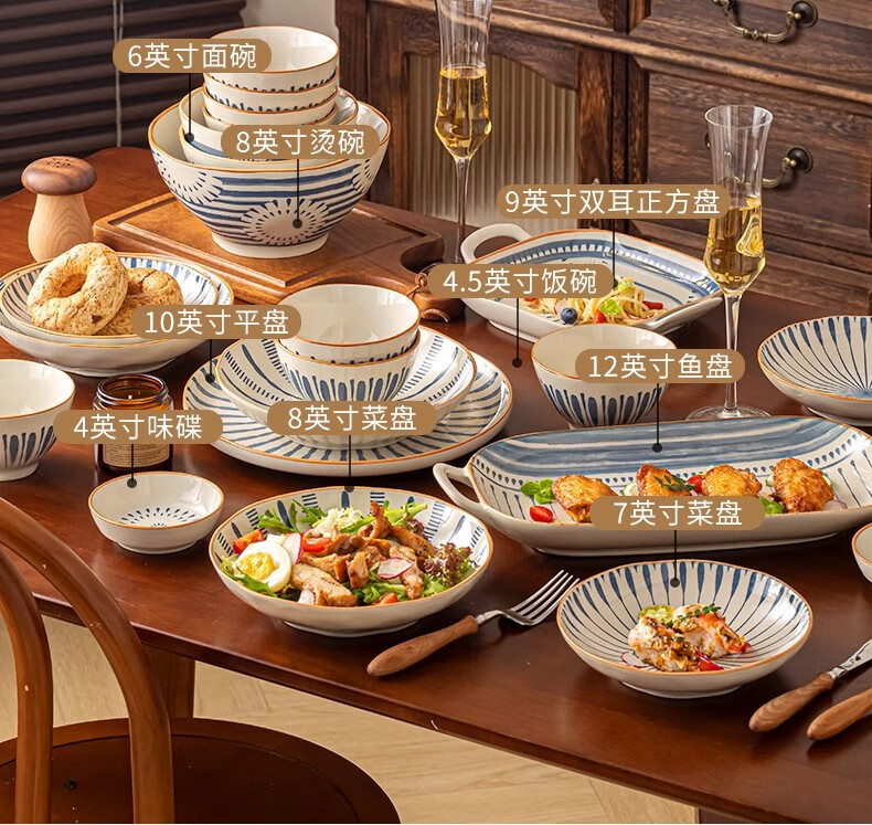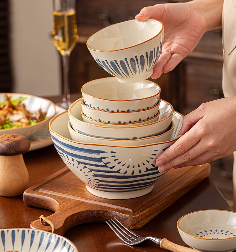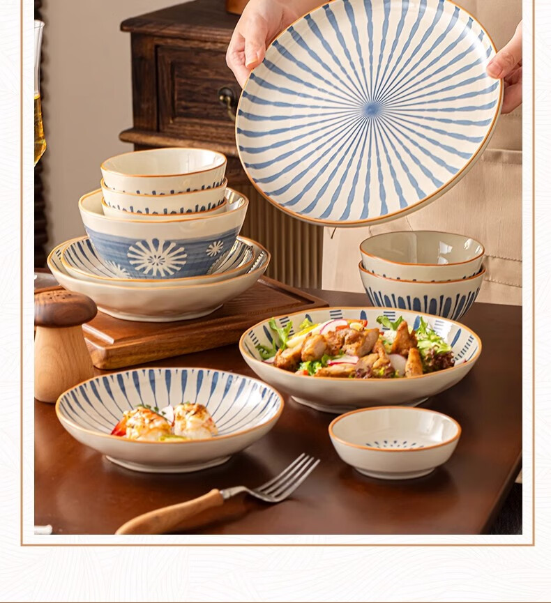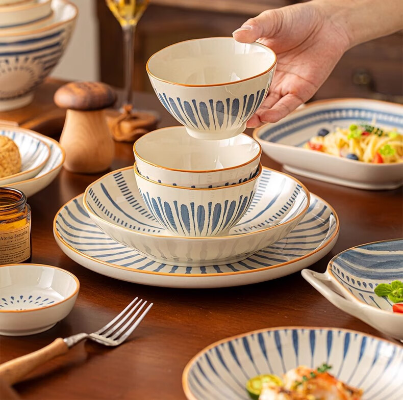 Persson Japanese ceramic tableware set bowls, plates, chopsticks, underglaze colored bowls, housewarming gift, Japanese food impression 24 pieces