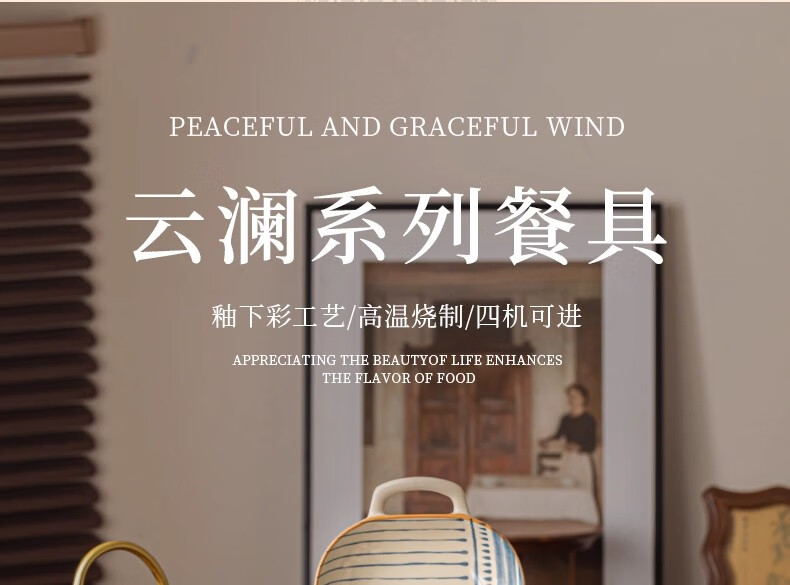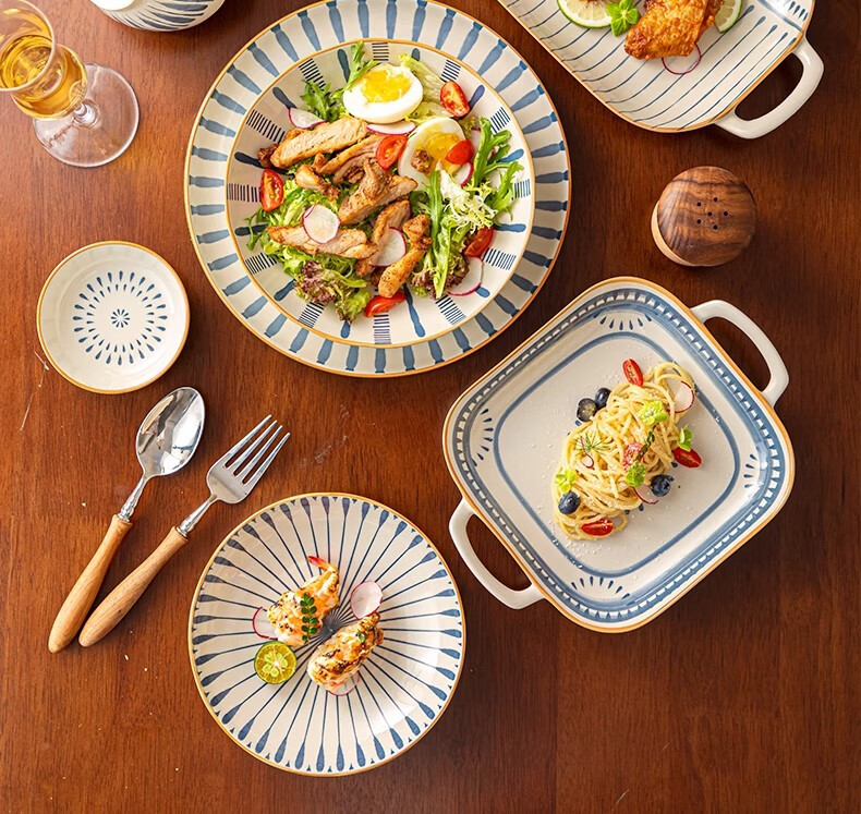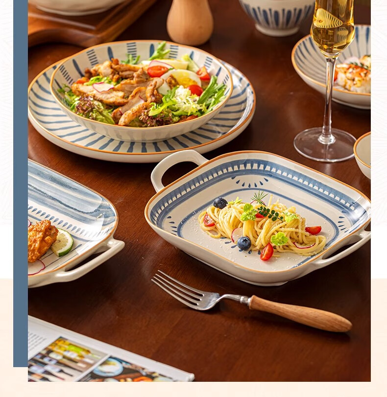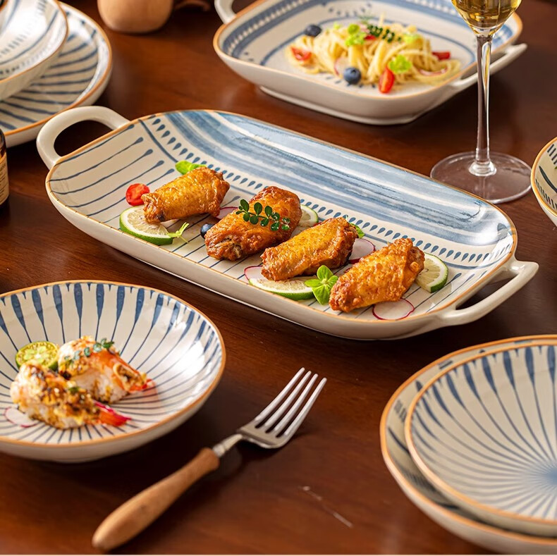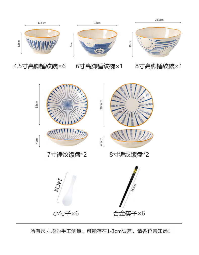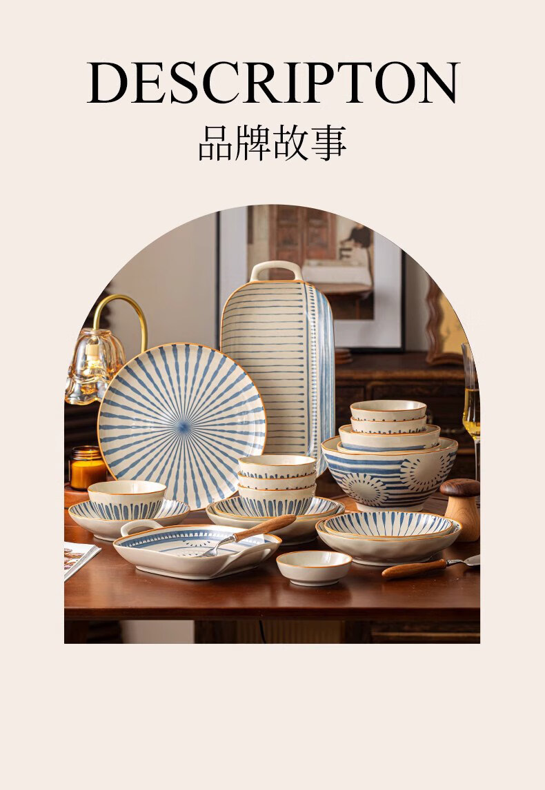 Persson Japanese ceramic tableware set bowls, plates, chopsticks, underglaze colored bowls, housewarming gift, Japanese food impression 24 pieces