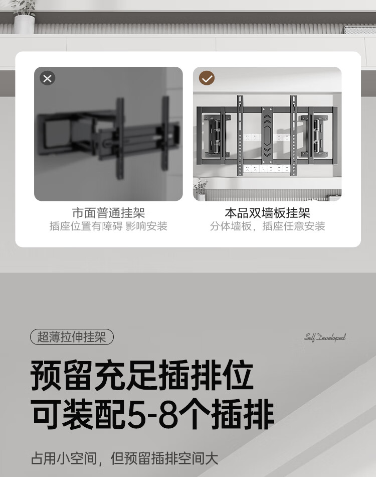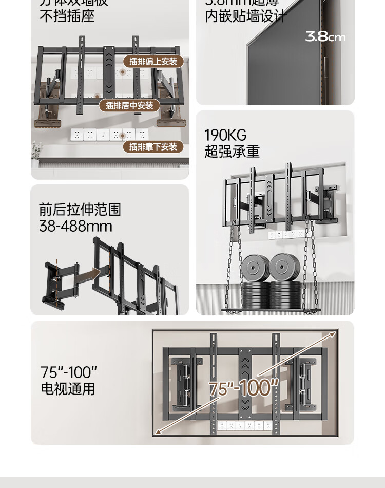 Enlip ultra-thin built-in split large load-bearing telescopic TV bracket wall-mounted 75-100 inches, suitable for Xiaomi Hisense TCL Skyworth 90 inches/100 inches, etc. Does not block the socket audio