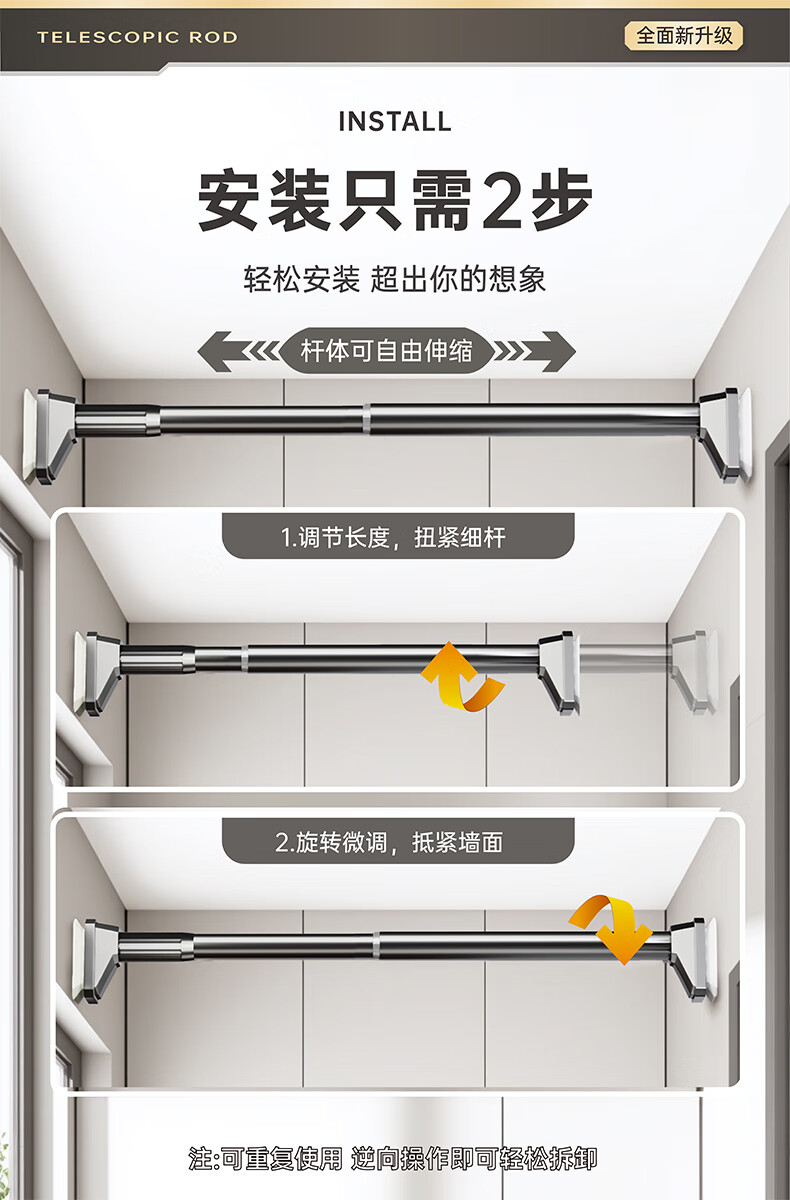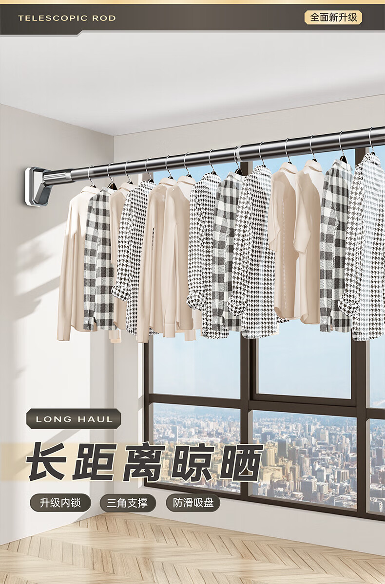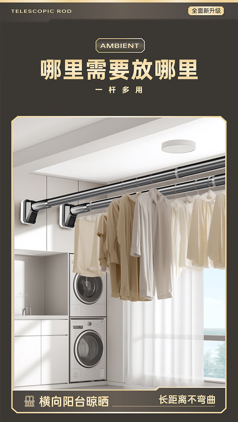 Cobbe punch-free telescopic clothes drying rod universal retractable clothes drying rack suspended clothes drying rod curtain rod 90-160