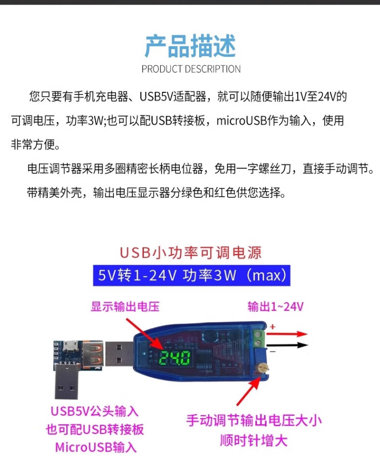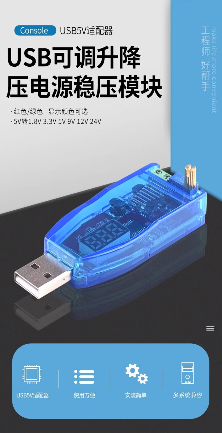 Qidi DC-DC USB adjustable buck-boost power supply voltage stabilizing module 5V to 1.8V 3.3V 5V 9V 12V 24V red display