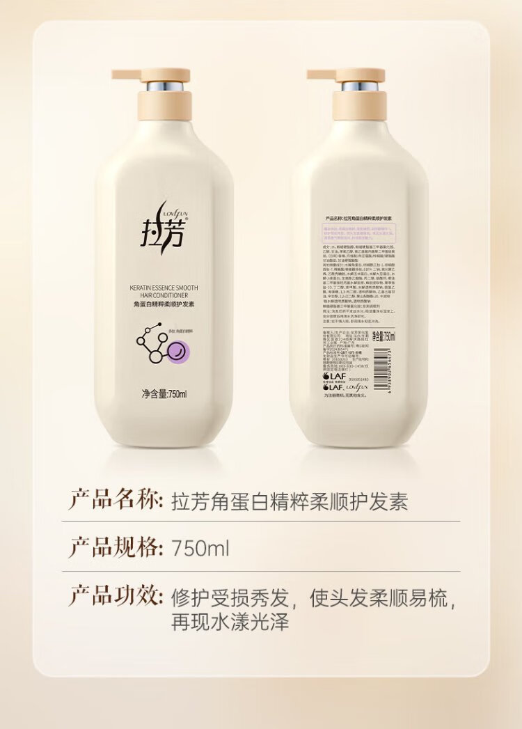 Lafang Keratin Essence Smooth Conditioner 750ml smoothes frizz, smoothes and moisturizes hair lotion