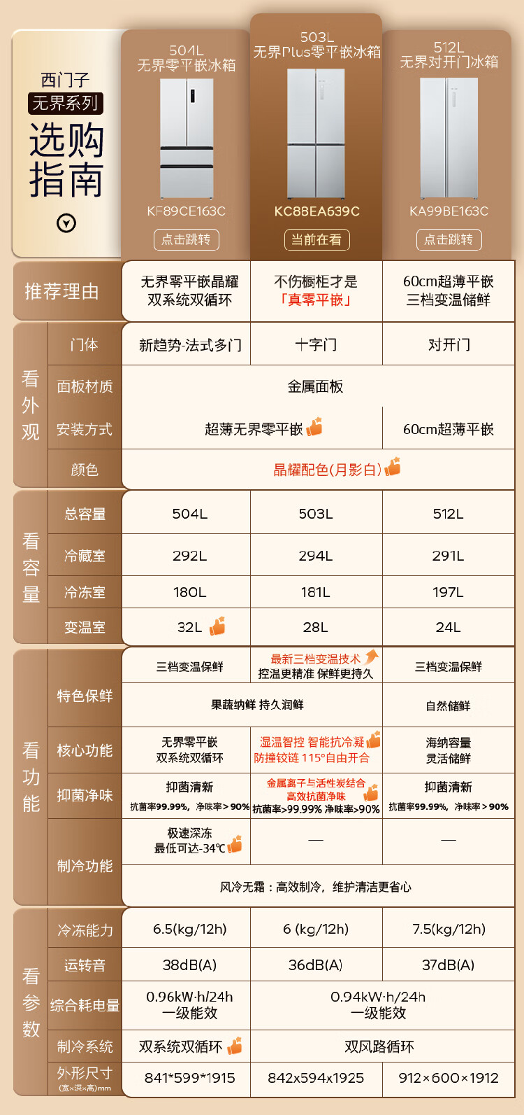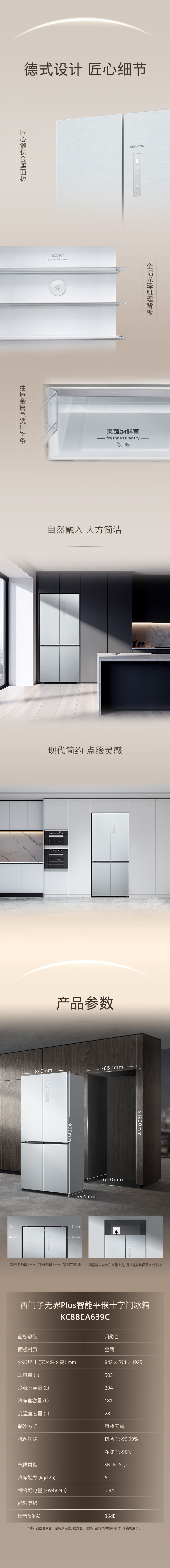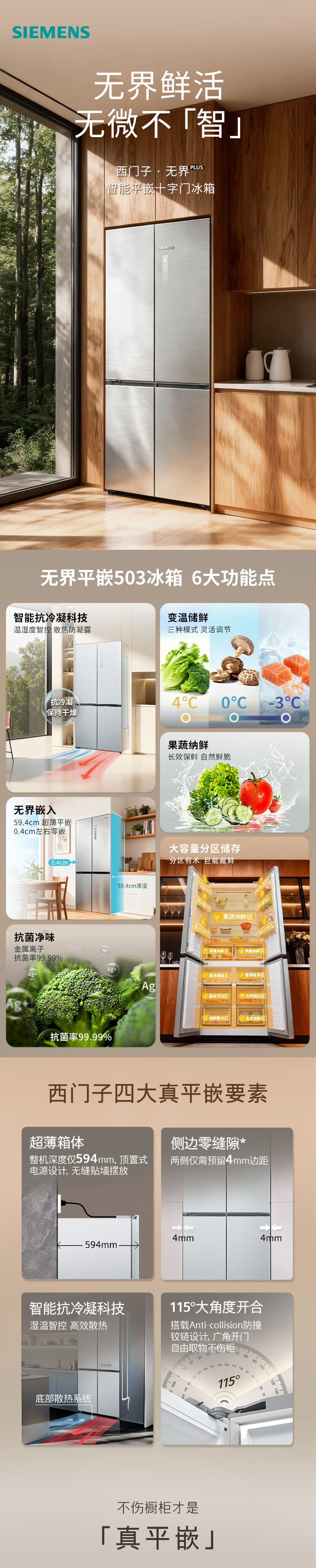 SIEMENS Unbounded Plus503L cross-door refrigerator large capacity intelligent anti-condensation ultra-thin embedded first-level energy efficiency KC88EA639C national subsidy