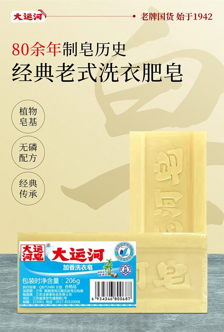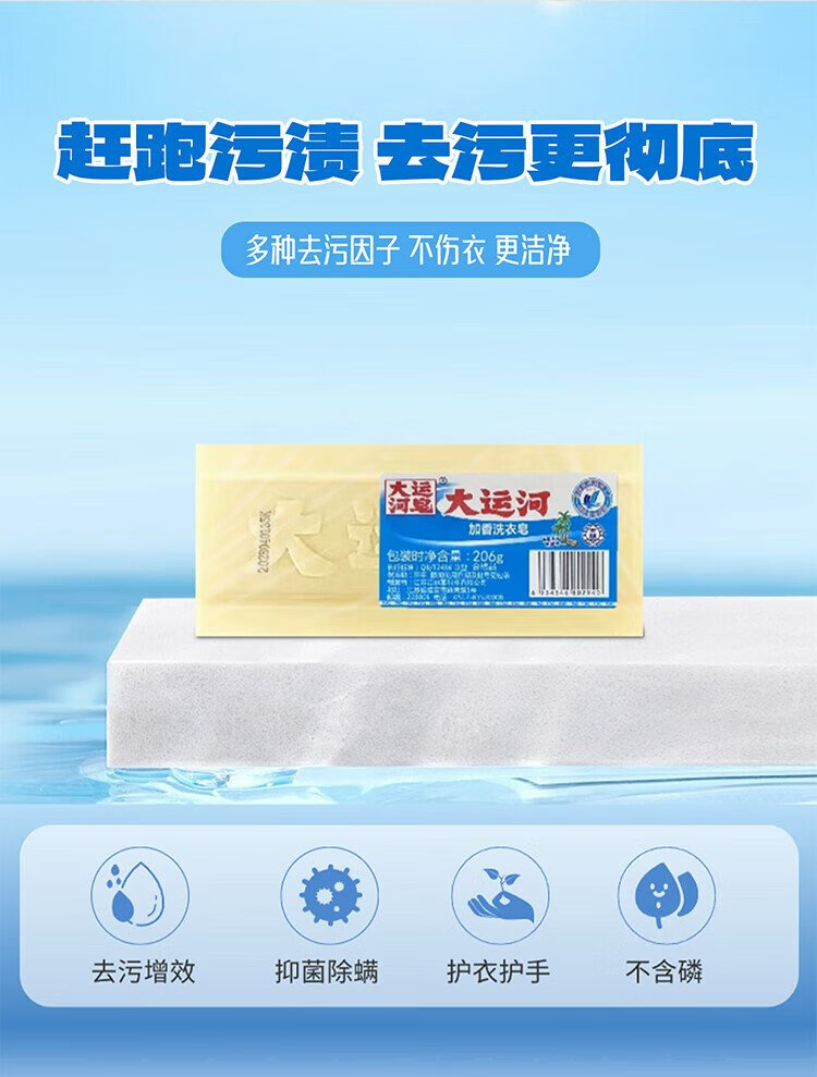 Grand Canal scented laundry soap 206g classic old soap phosphorus-free decontamination and stain-free residue-free laundry brush shoe box 30 yuan
