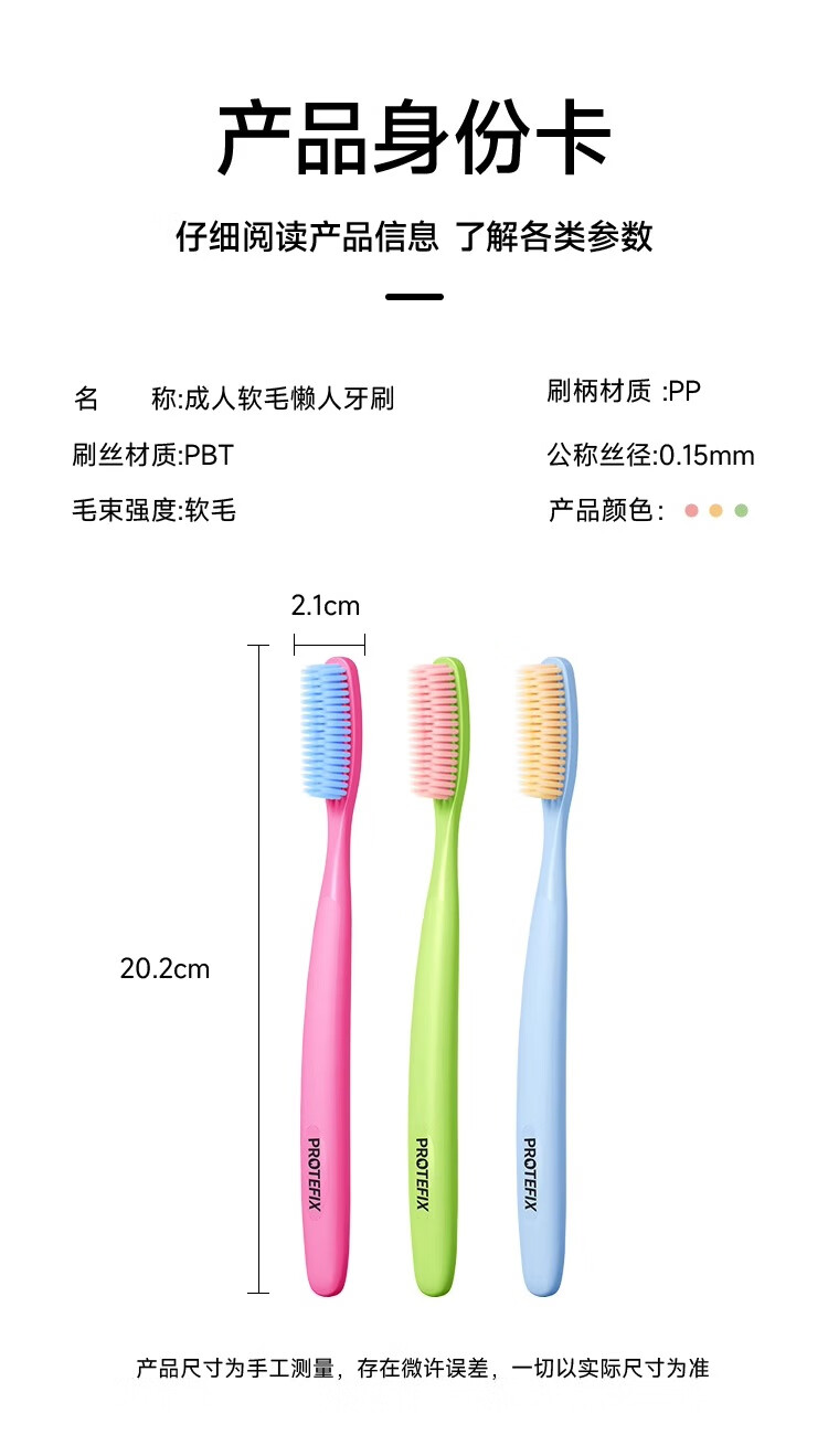Dinosaur Doctor (PROTEFIX) adult toothbrush with large head, soft bristles and extended head, high-end family, dedicated for lazy men and women, 3-pack (blue + green + red)